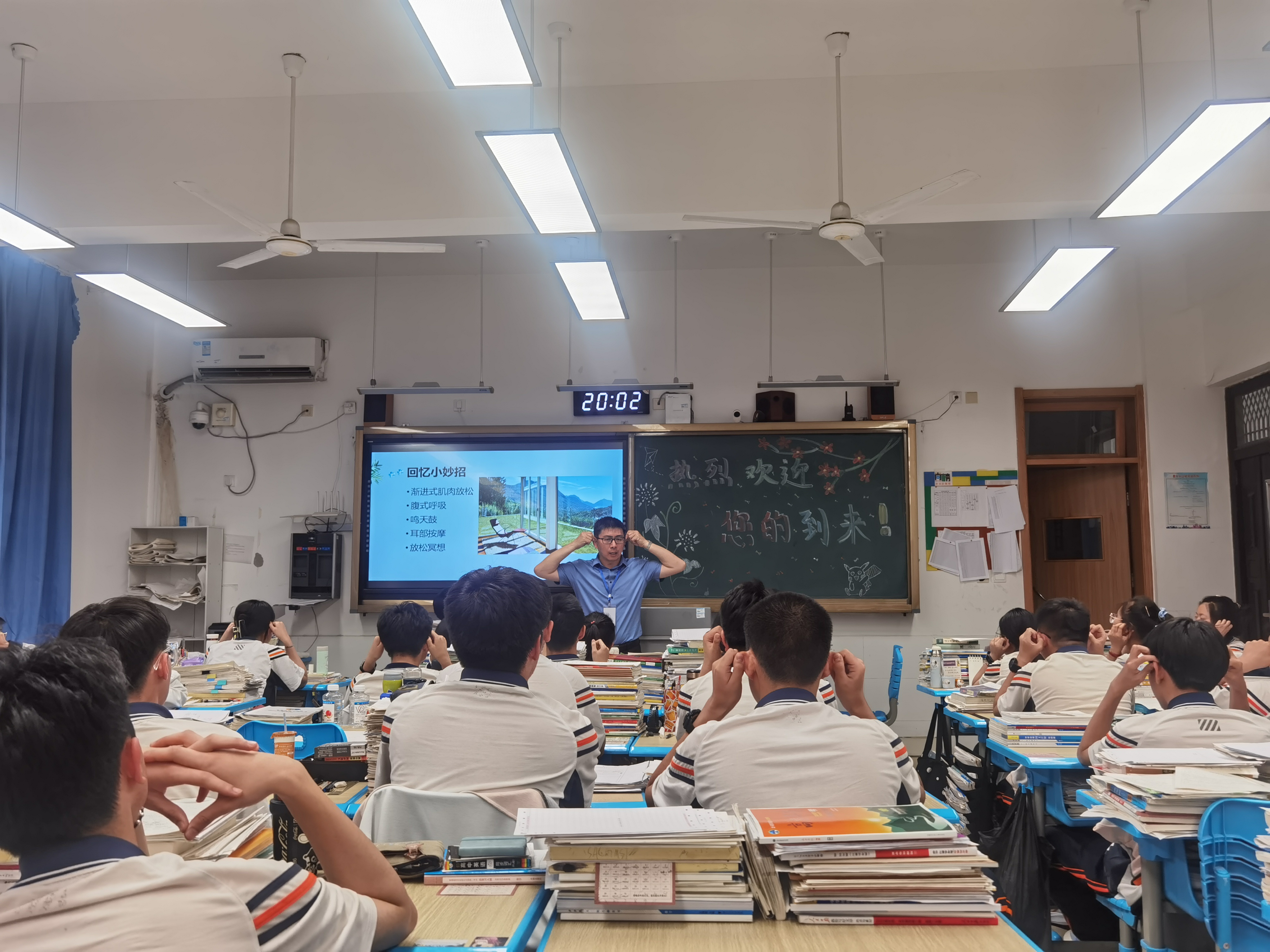 上课伊始,心理老师真诚邀请同学们全身心投入、积极参与、认真聆听、真诚分享,用温暖舒畅的语言引导学生放飞心情、释放压力。在课堂上,老师们带领同学们学习运用渐进式肌肉放松和腹式呼吸等多种身体放松小妙招,同学们积极练习认真体会,欢笑阵阵。为了让学生收获内心的平静,静心倾听心灵的声音,在想象中放松保持好心情,心理老师带领同学们进行心理预演冥想减压的练习。 一系列的心理赋能活动如及时雨,为正在埋头坚持的高三学生带来了放松身心、加油打气的营养。同学们释放了紧张情绪,增强了考试的信心,相信同学们会继续奋勇拼搏,坚定前行。