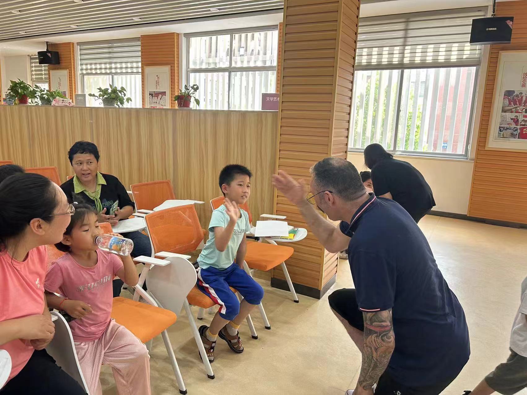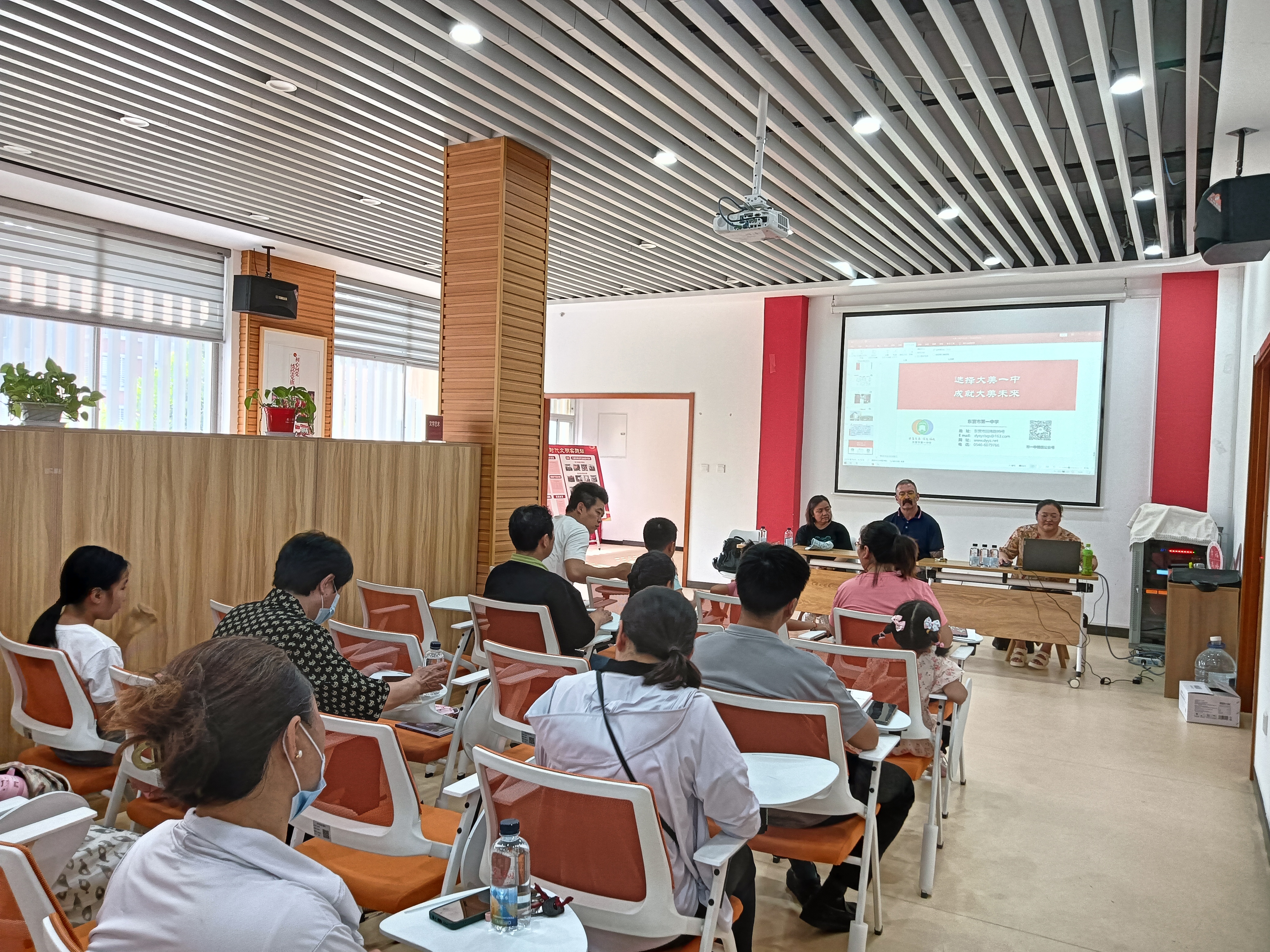 6月23日,东营市第一中学国际部教师在国际部主任赵新玲的带领下,一行六人赴新兴社区进行了“送教到社区”活动。在社区工作人员的积极配合下、社区群众的踊跃参与下,外教送学、招生宣讲、家庭教育方法指导等方面均取得可喜成果。此次送教活动拉近了学校和社区群众的关系,是对学校教育教学理念、办学方式、家庭教育的一次科普和宣传。