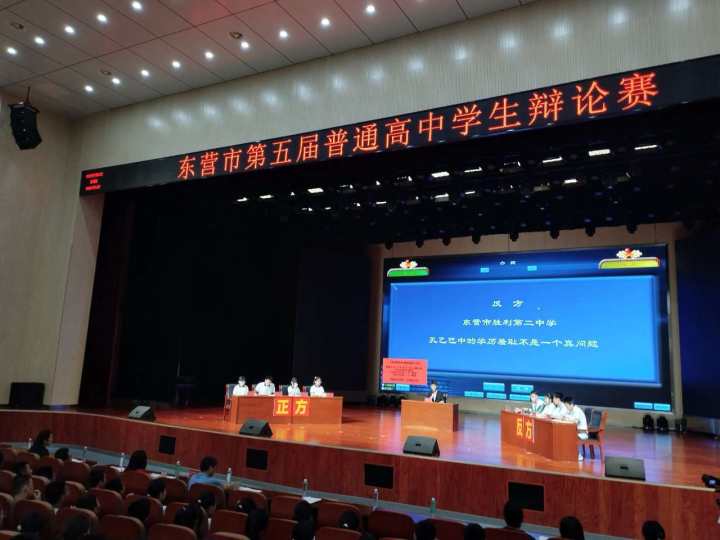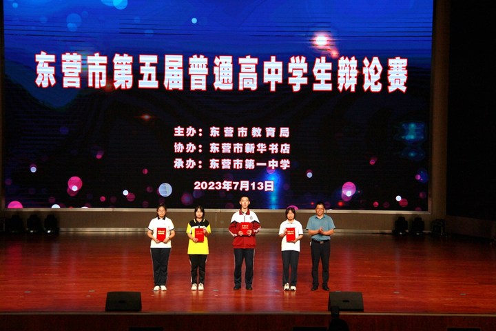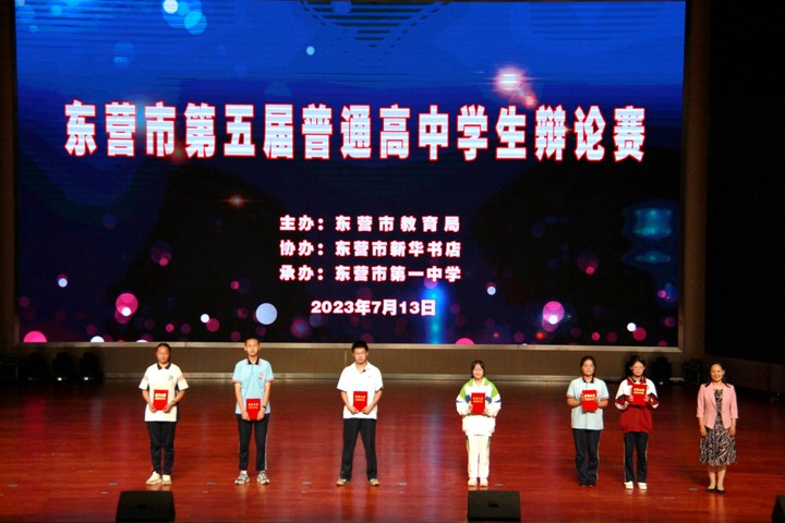 7月13日,东营市第五届普通高中学生辩论赛暨山东省市级选拔赛举行。市一中辩论队再次摘得东营市高中学生辩论赛冠军(团体金奖第一名)。广饶一中、正兴高中、胜利二中分获第二、第三、第四名,以上四支队伍将于暑假代表东营市参加山东省第五届高中学生辩论赛。