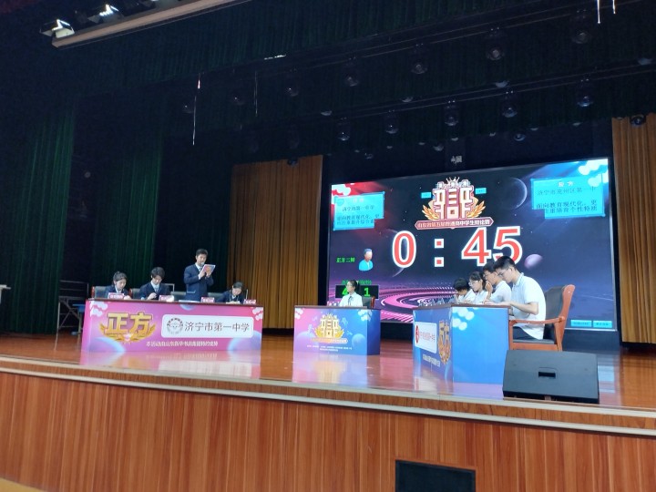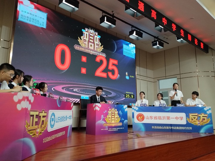 “我方的观点是,面向教育现代化,更应注重提升综合素质……”“我方认为,面向教育现代化,更应注重培育个性特质……”7月26日上午,山东省第五届普通高中学生辩论赛在东营市第一中学正式揭开帷幕。各市进入省赛排名的64支参赛队伍集结东营市一中,经过为期五天的初赛、复赛,最终将决出辩论队8强。