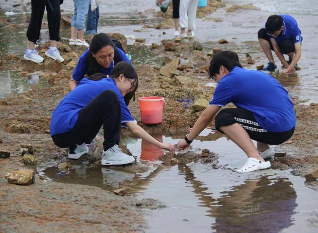 之后的两天里,我们起早贪黑,怀着对科研的敬畏与探索的新奇,赶往鱼山校区的生物实验室寻找自然的奥秘。在礁石滩涂收集完石子和动植物,在认真听完老师的讲解后,大家迫不及待地投入到生态球与标本的制作过程中。在这个实践过程中,我们既学到了各种生物在自然界中所占的比重,也明白了物种的重要性,往后的时光里我们也将会更加敬畏生物。另外,在老师的指导下我们还在太平角采集藻类并进行了标本制作,大家对此流露出浓厚的兴趣,纷纷跃跃欲试。标本制作过程虽简单,但仍需要我们用一丝不苟、认真踏实的态度去完成。最终,经过大家的不懈努力,我们在规定的时间内高质量地完成了制作。期间,各小组分别进行了生态球制作的打分并评选出最优秀的两组获得来自海大海洋生物博物馆的“绝版”奖品。