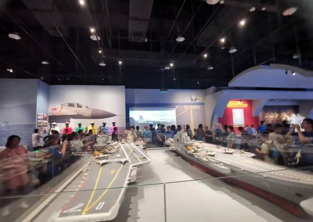 下午,我们来到了海军博物馆,这里人山人海,游者甚众。我们高校科学营师生被安排经过专门通道进到海军博物馆展厅,跟随讲解员的细致讲解,重温了中国海军成立七十多年来的发展史。从中我们能看到在整个发展过程中涌现了许多英雄人物和集体:“三七一”号潜艇成功战胜海中断崖;王伟烈士为了捍卫国家安全驾机撞向美军大型侦察机,不幸壮烈牺牲……中国海军的发展是曲折又漫长的,所谓岁月静好,那是有人替我们负重前行。未来,中国海军的发展也会健步不停,大步向前。