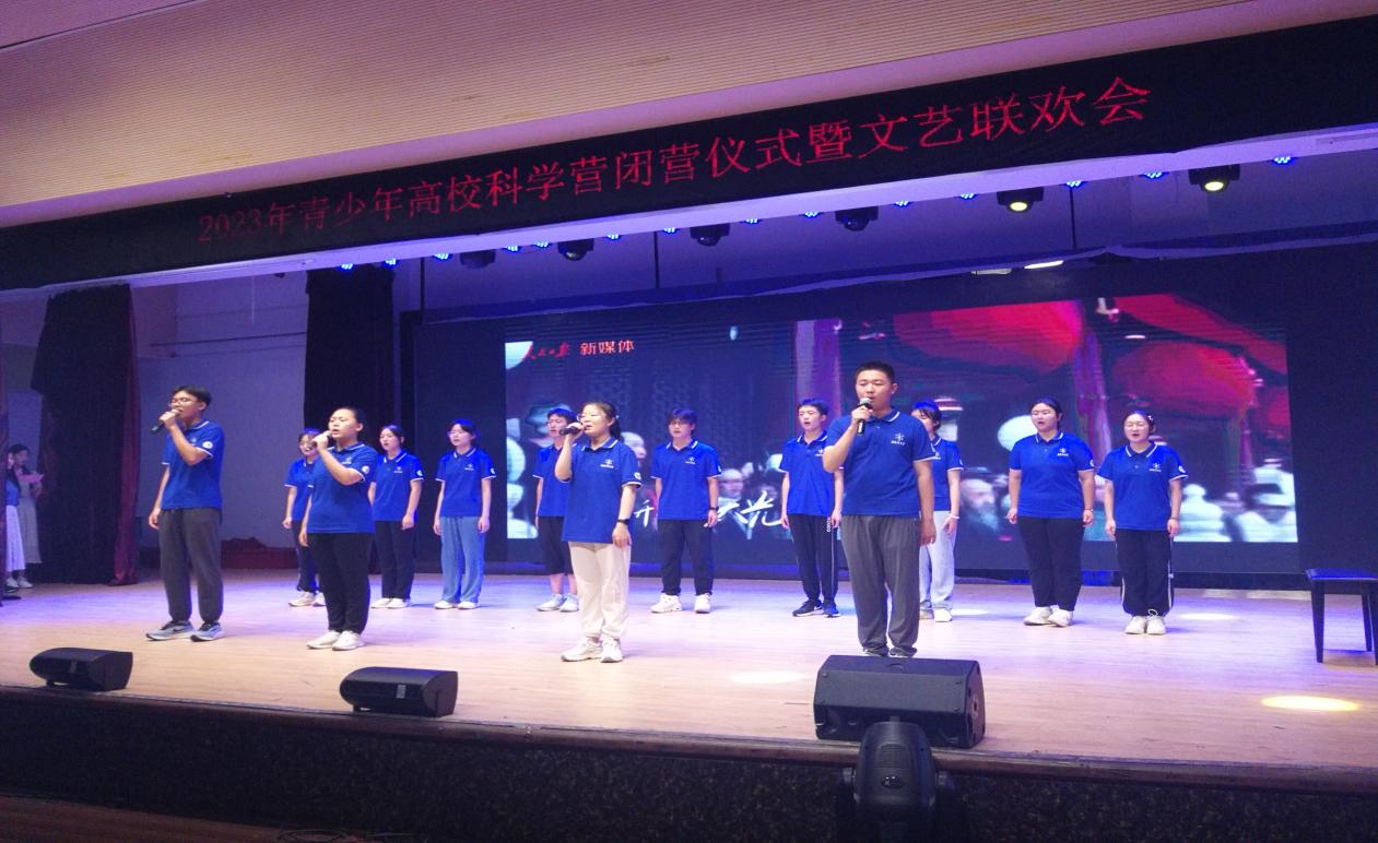 晚上,我们进行了闭营仪式的排练,大家拿出最饱满的热情和最激扬的声音顺利地通过彩排,完成后吃了舒畅的晚餐,准备闭营仪式的最终呈现。在优美温柔的旋律结束后,我们一行十三人伴随着紧张的心情登上舞台,演唱开场曲目《少年中国说》。大家紧跟音乐,找到音调,卡准节奏,完美地呈现出一场激情澎湃的表演。