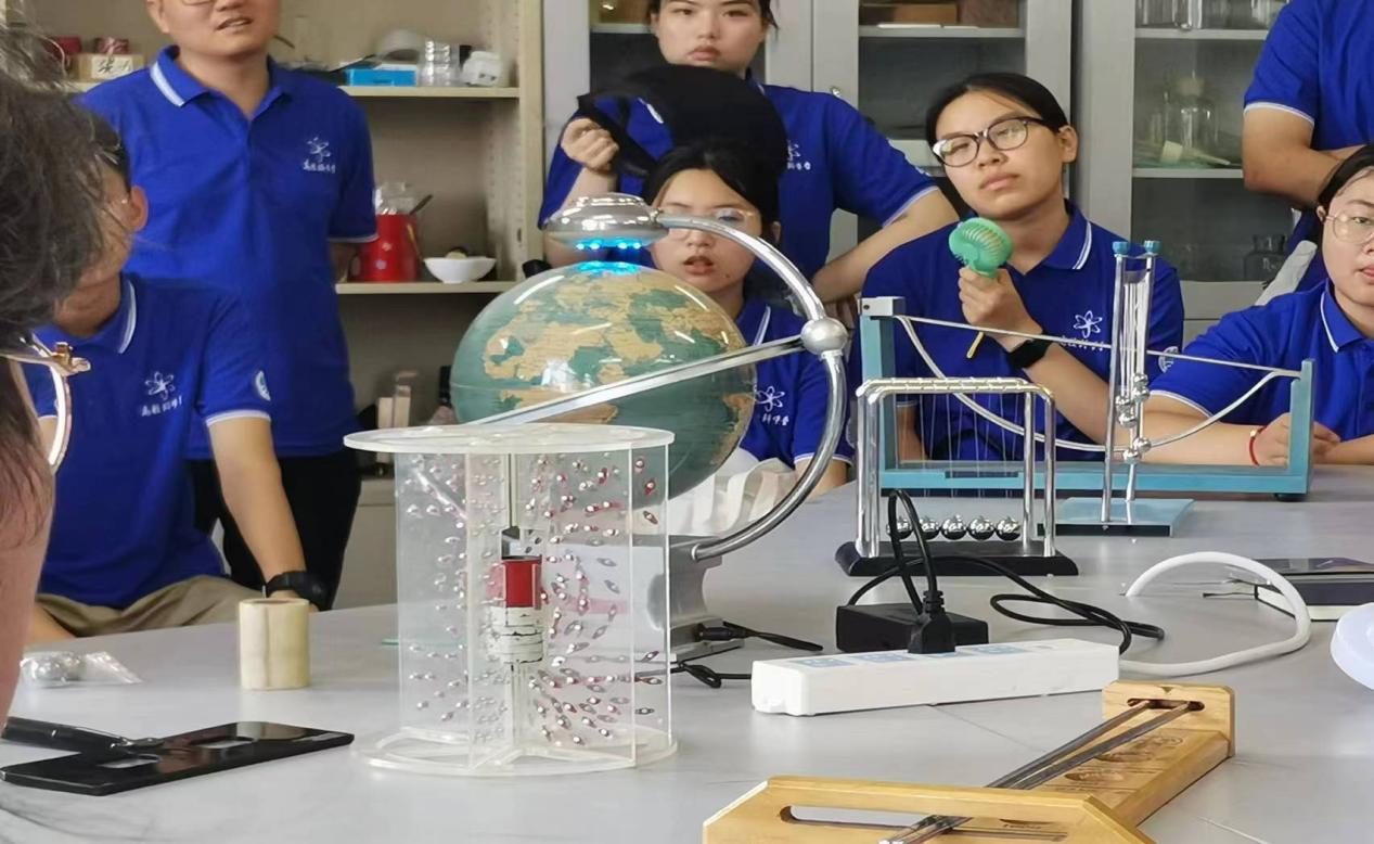 下午,科学营一组同学一并聆听海大讲解员介绍海大的历史与科研成果,听闻其发展速度之快,程度之深,成就之广,不由心生感叹。随后,我们前往实验室,认真倾听老师的讲解并与学长学姐展开激烈的讨论,探寻物理世界和地空间的奥秘。