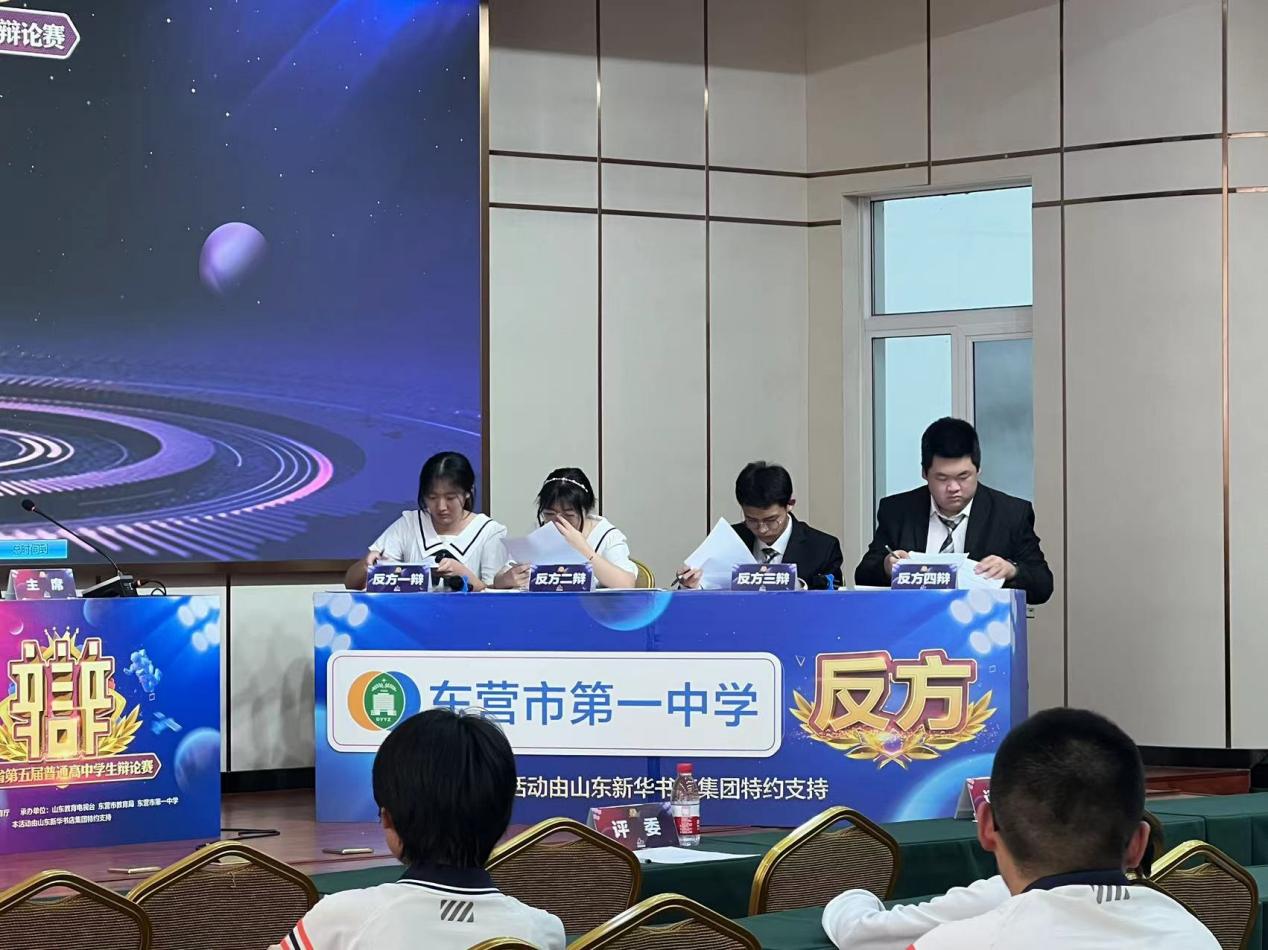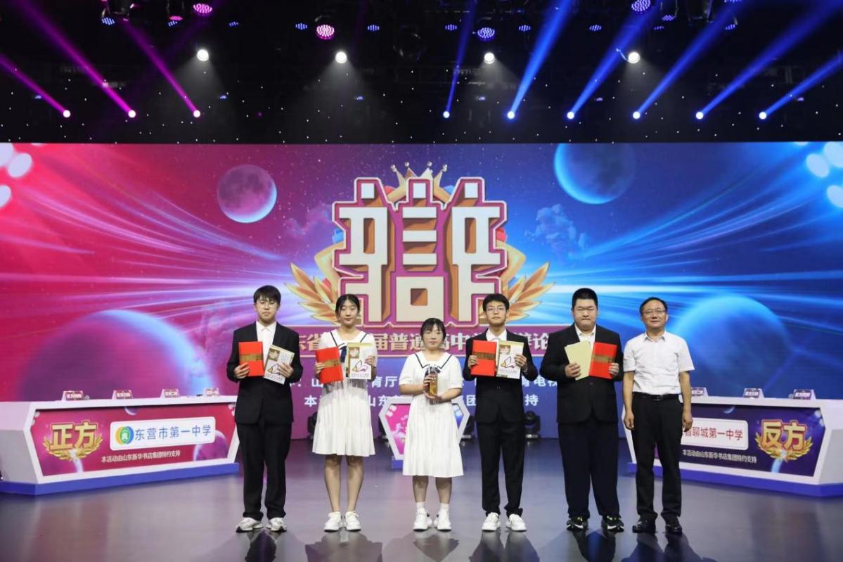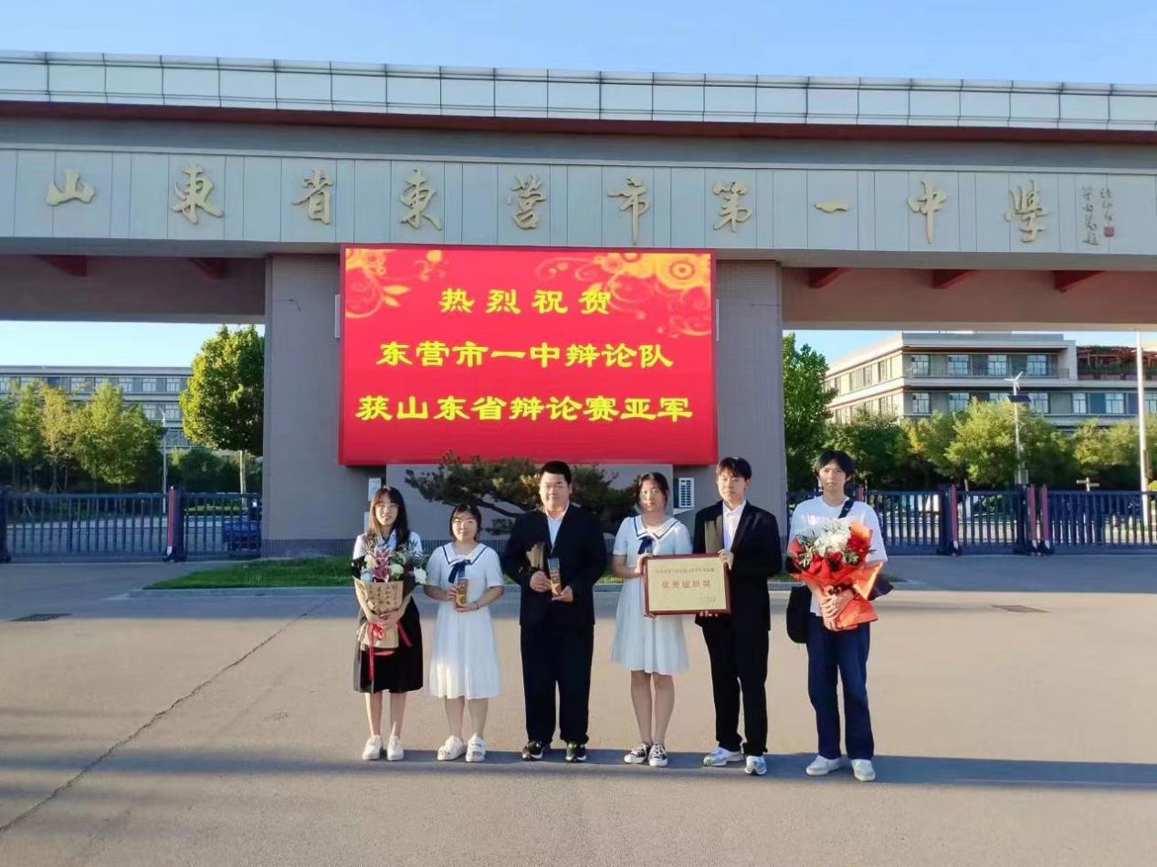 纵横论古今,张弛辩天下。8月19日至21日,山东省第五届普通高中学生辩论赛总决赛在山东教育电视台演播大厅再次开战,历经三场激烈角逐,东营市第一中学辩论队以优异表现,夺得亚军,四辩范泉达同学荣获此赛事全省唯一的全程最佳辩手。这是我校辩论队历届省赛中最好成绩,也是东营市学校参赛历史最好成绩。