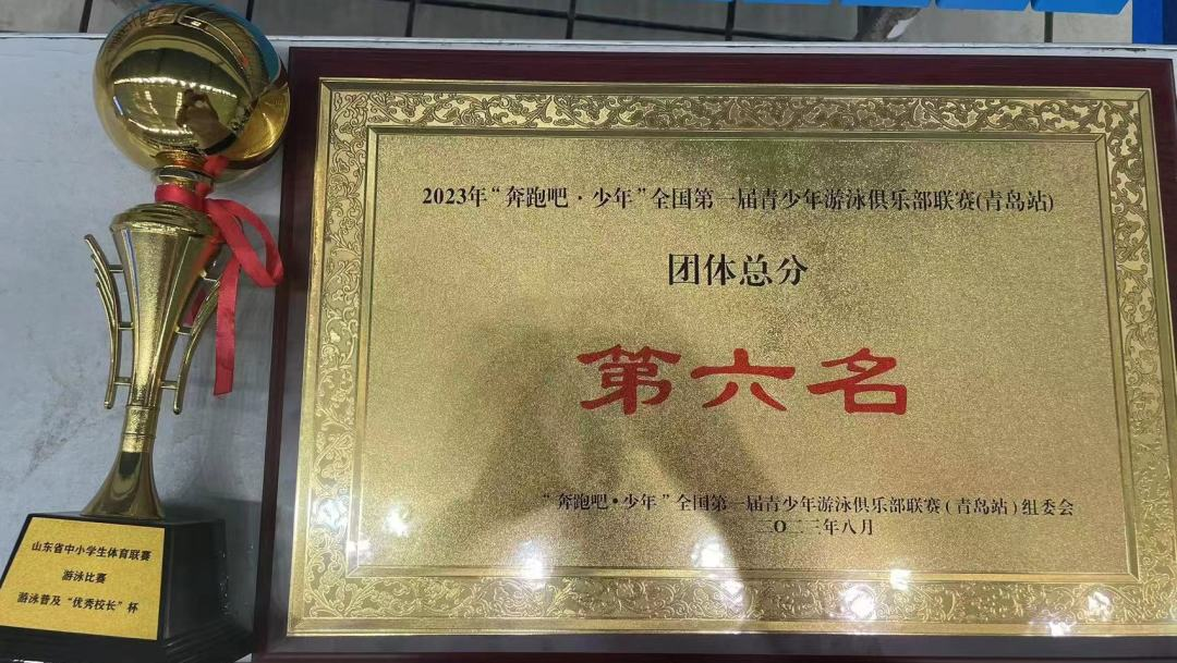 本次山东省中小学联赛共300余所中小学报名,我校获得山东省学校总分第五名,荣获山东省中小学生体育联赛游泳比赛游泳普及“优秀校长”杯。