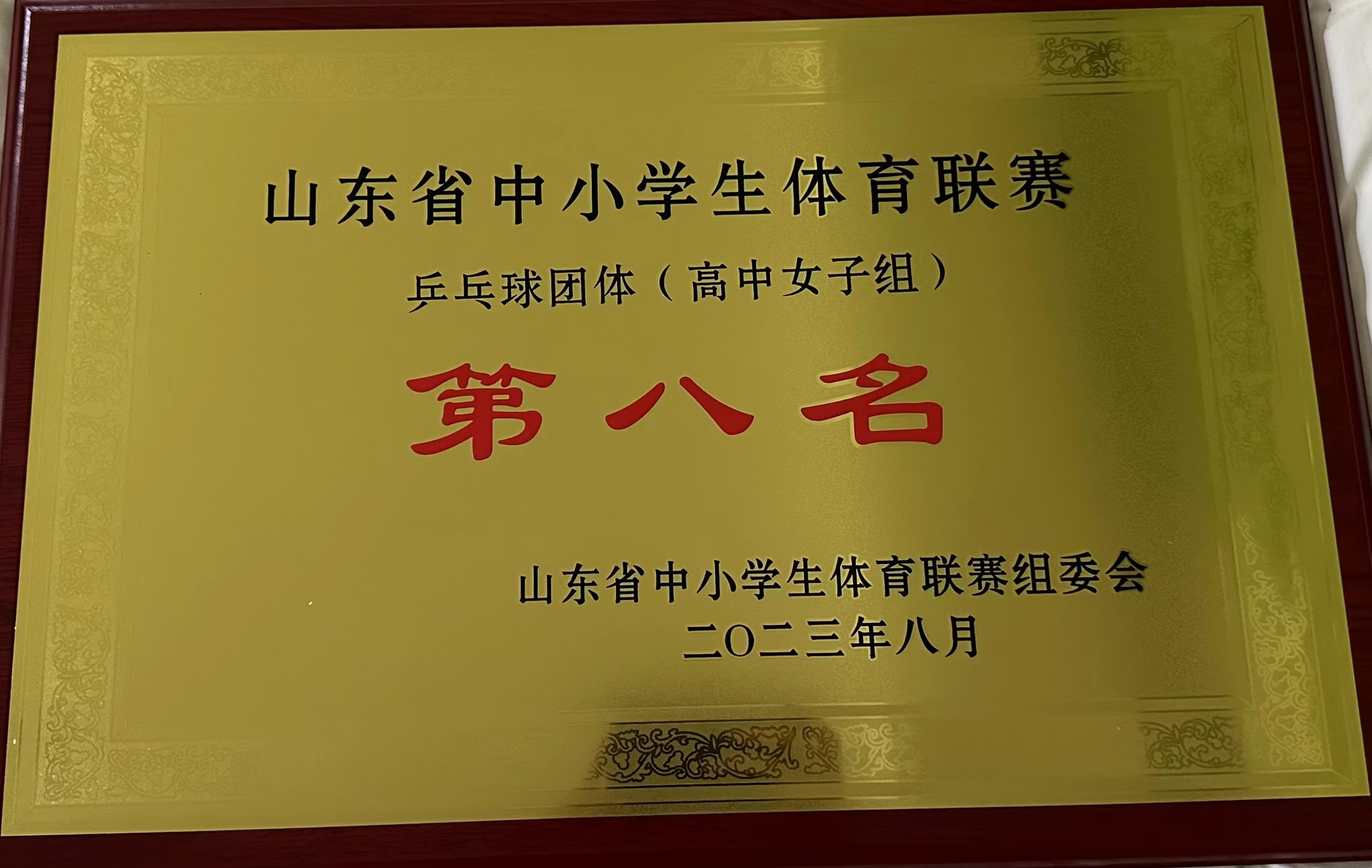 8月16-19日,在山东省中小学生体育联赛乒乓球比赛中,市一中女子团体代表队获山东省高中组团体第八名。