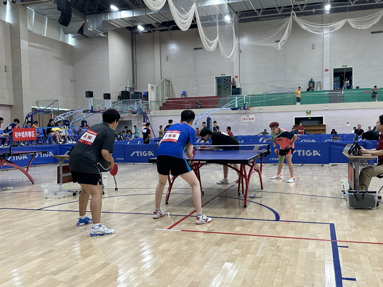 在赛场上,市一中女子乒乓队员们努力拼搏,顽强迎战,最终赢得骄人成绩。