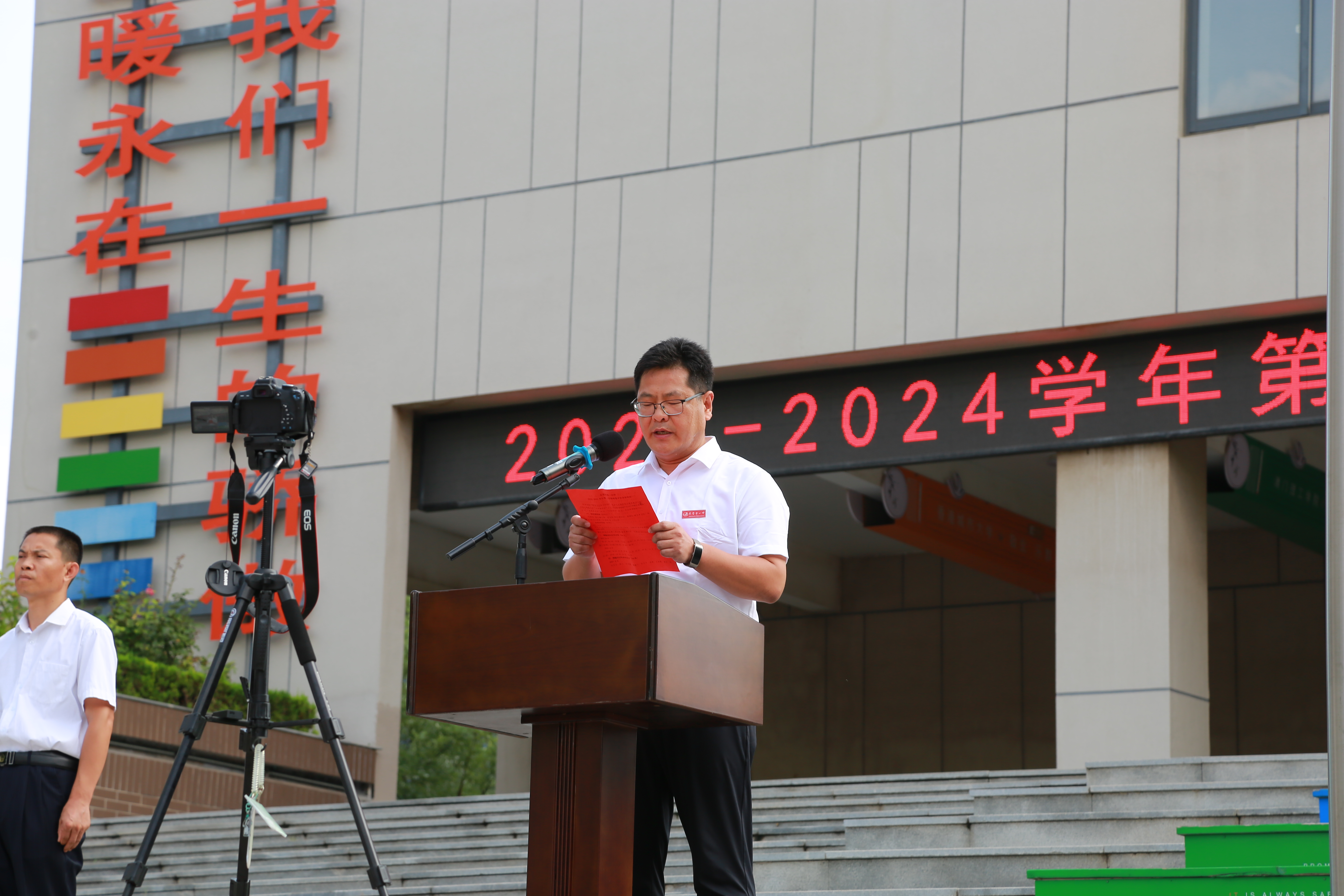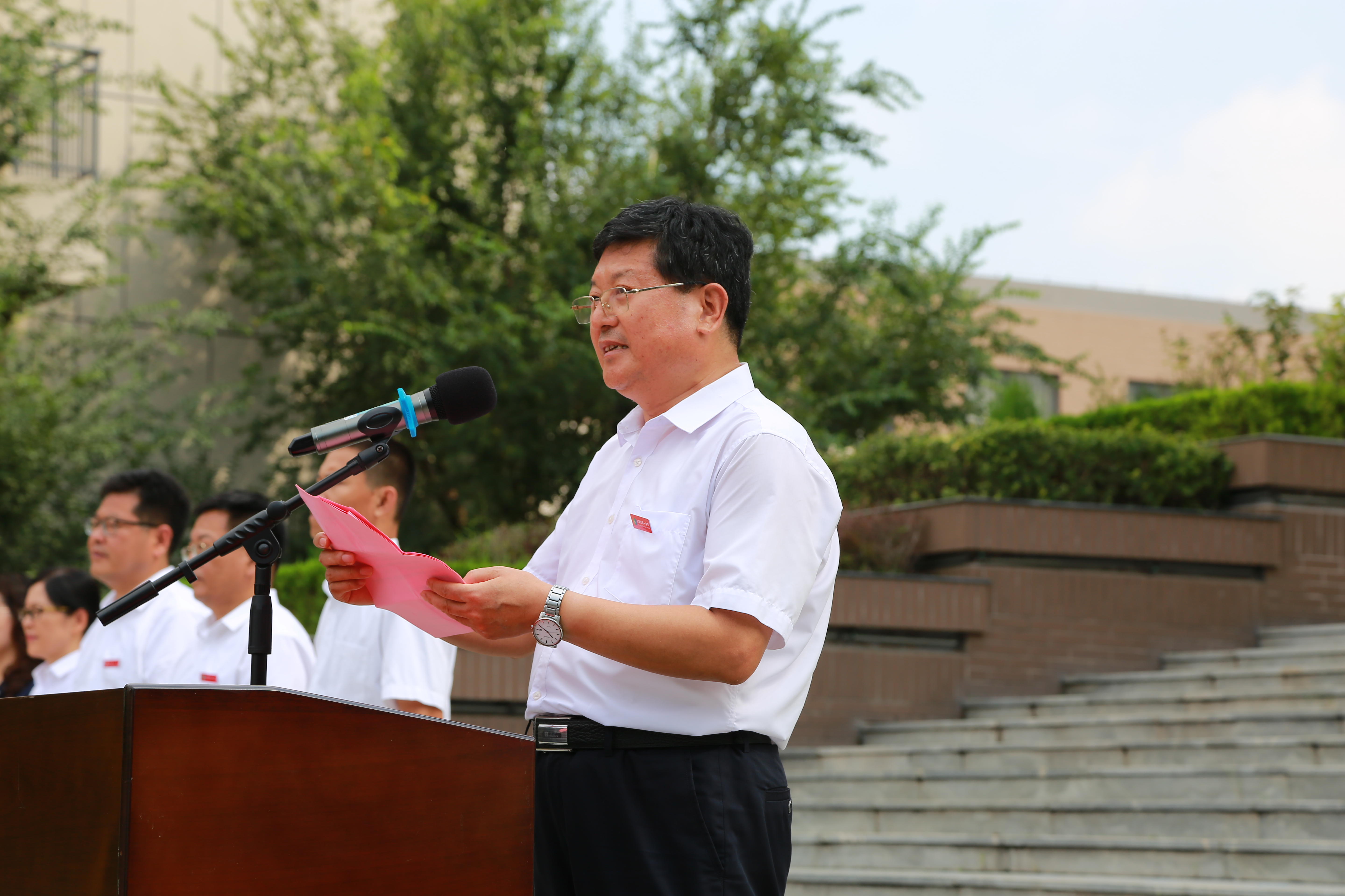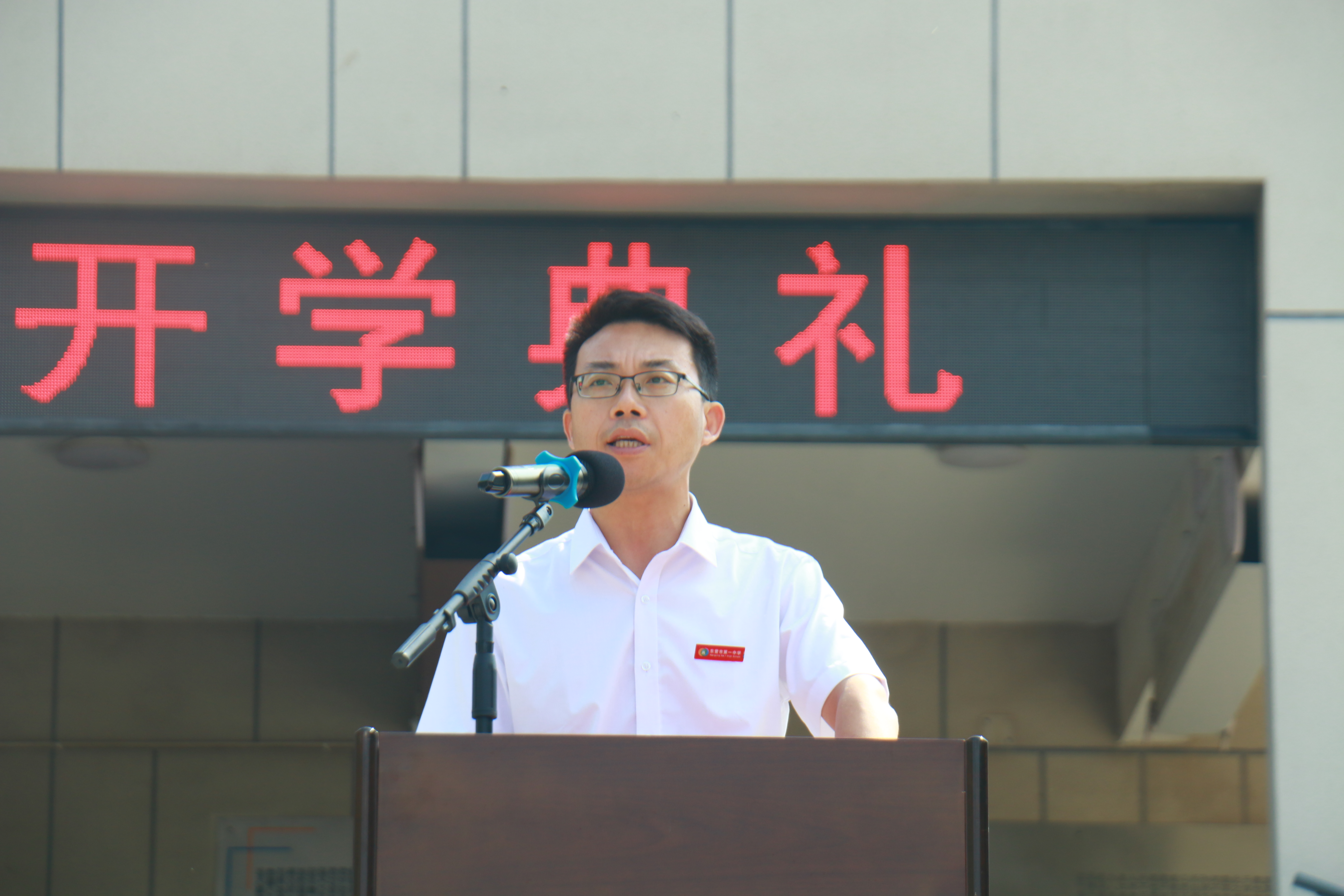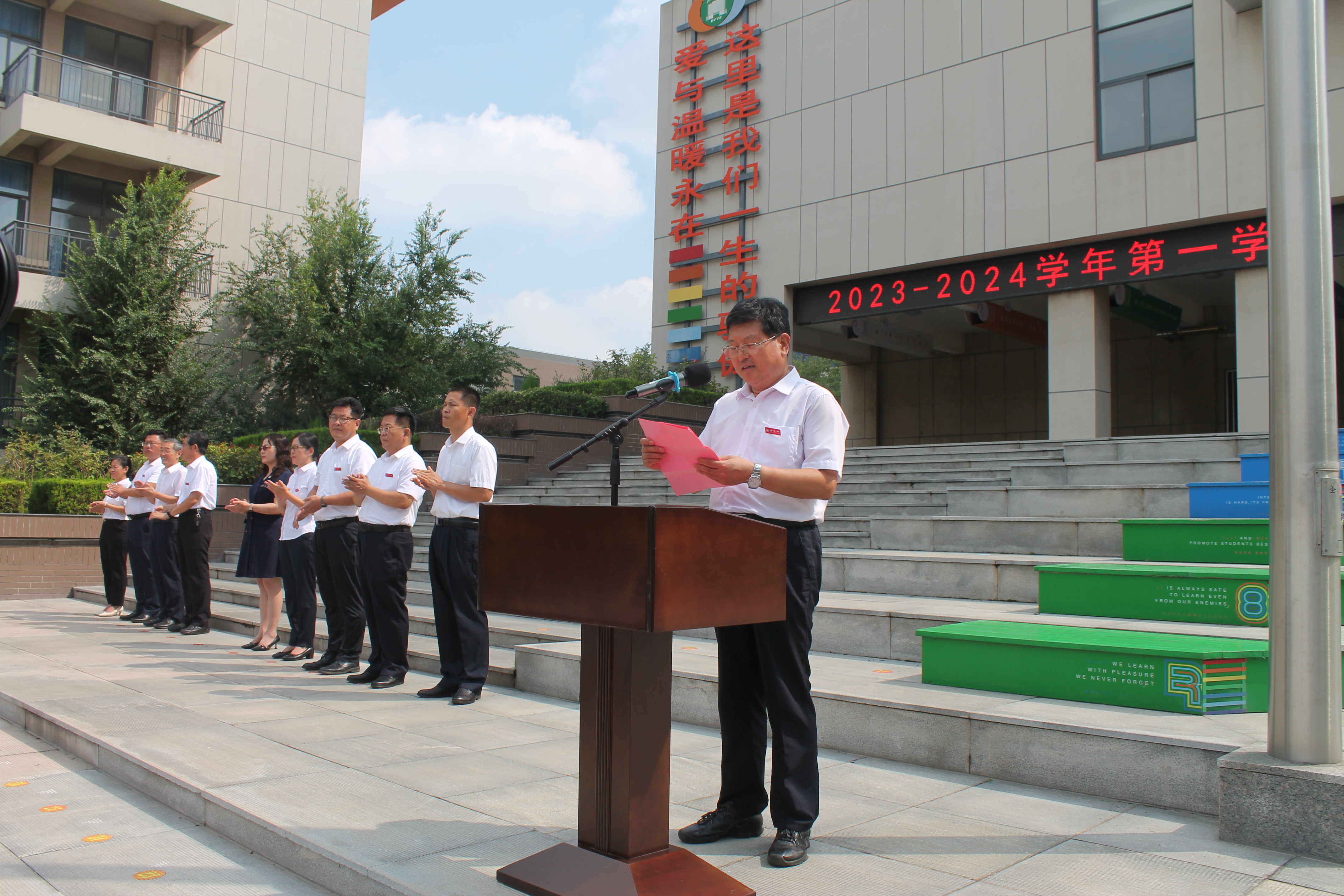 史校长指出,过去的一年,全体一中人共同努力,各项工作都取得了长足进步,大美一中正巍然屹立在东营基础教育的潮头,彰显着黄河口教育的新担当。他希望同学们把“敬学”的理念根植于心,希望同学们把校训力践于行;希望全体一中人,在“星宿、共飨、尚书、知新、登顶”的文化氛围中,把立德修身作为必修课。他强调,新的学年我们要牢牢秉持“敬学”的办学理念,以创建全国一流名校为目标,同心同德,追求卓越,把信心变为行动,在付出中收获未来!
