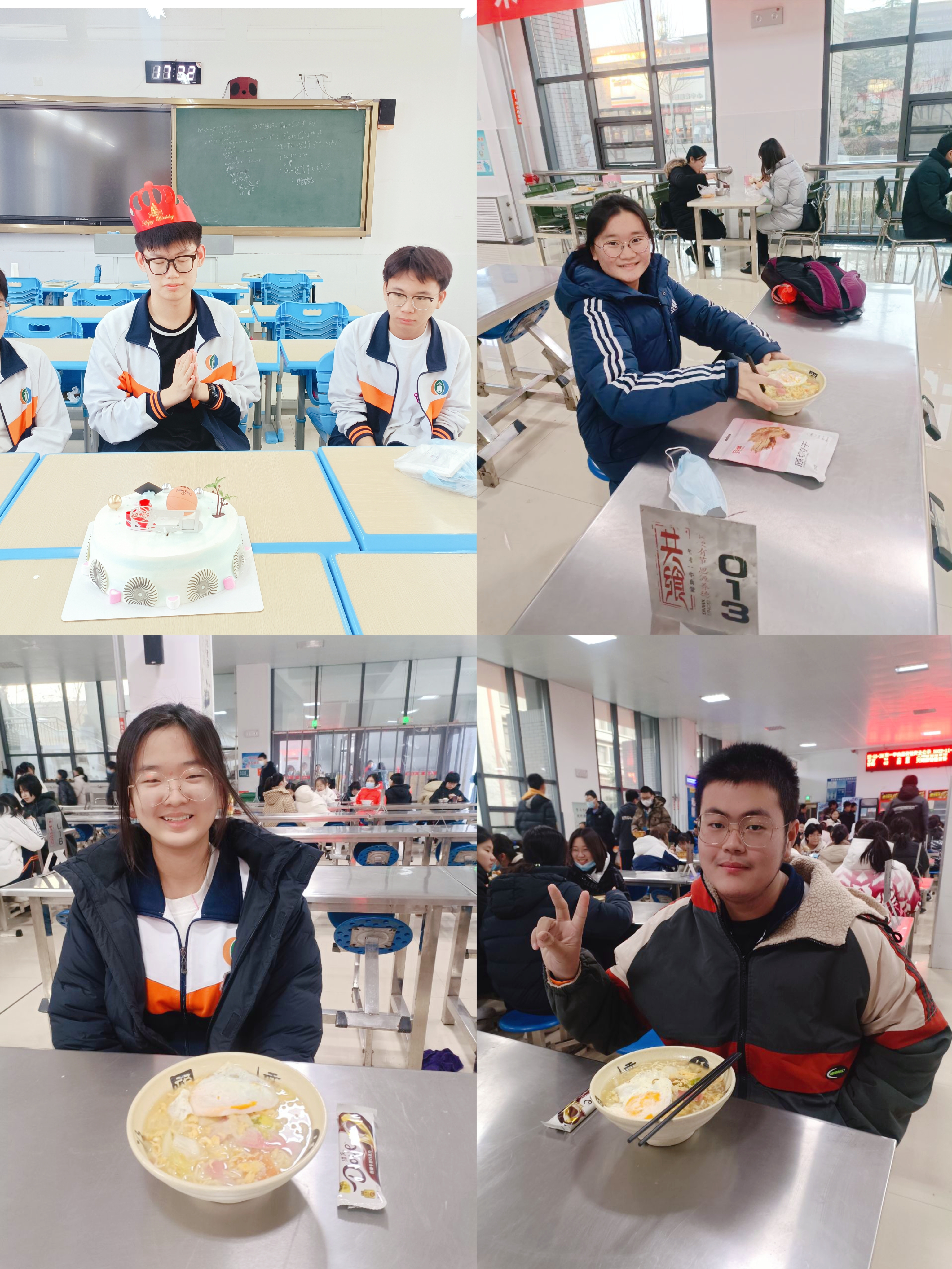 疫情封校期间,给过生日的孩子亲手制作的蛋糕。高三临考,大周回不了家的孩子,每人都有香喷喷的长寿面。