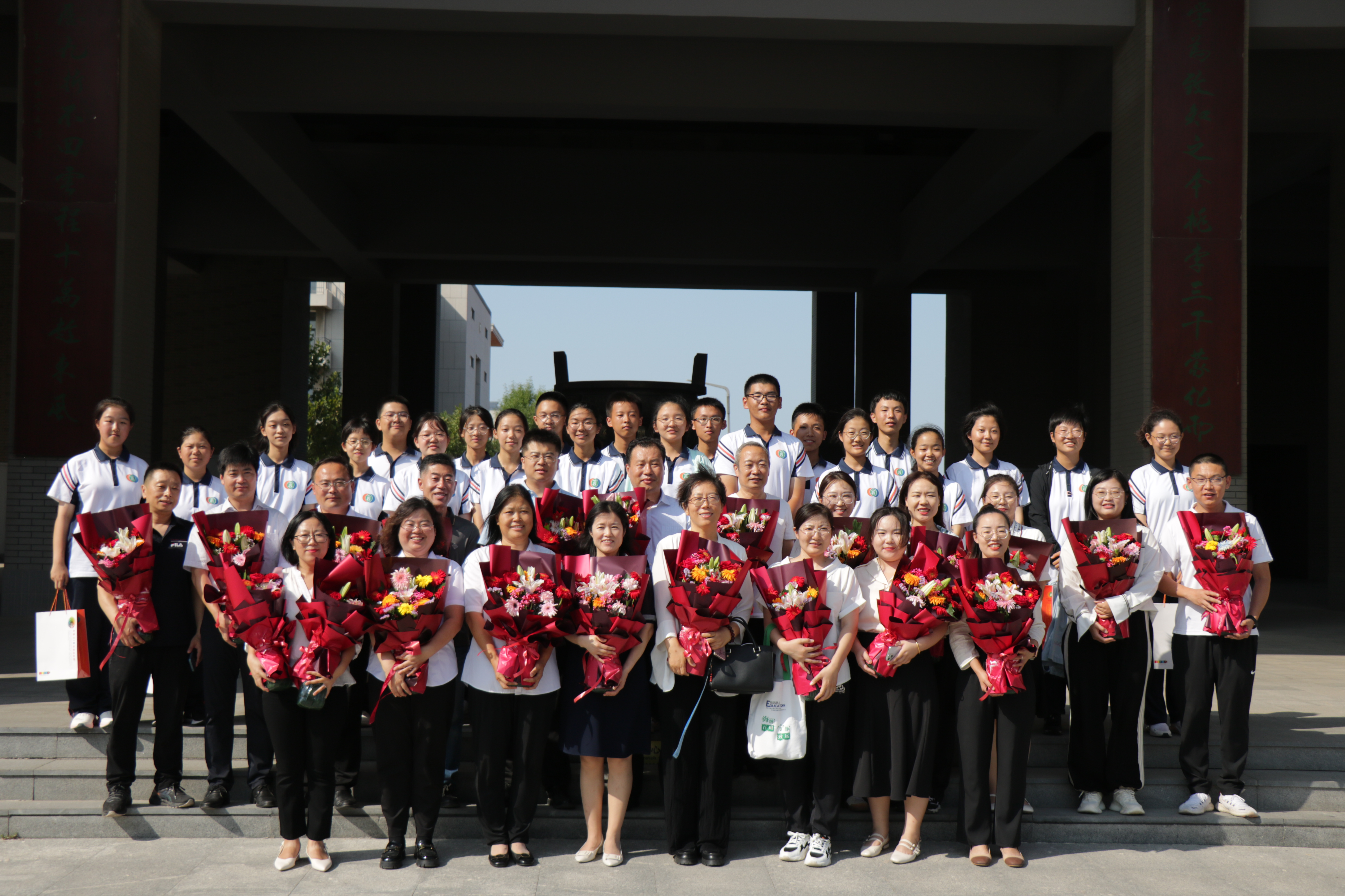 庆祝大会开始前,高一优秀学生代表邀请母校班主任或老师前来市一中观礼。
