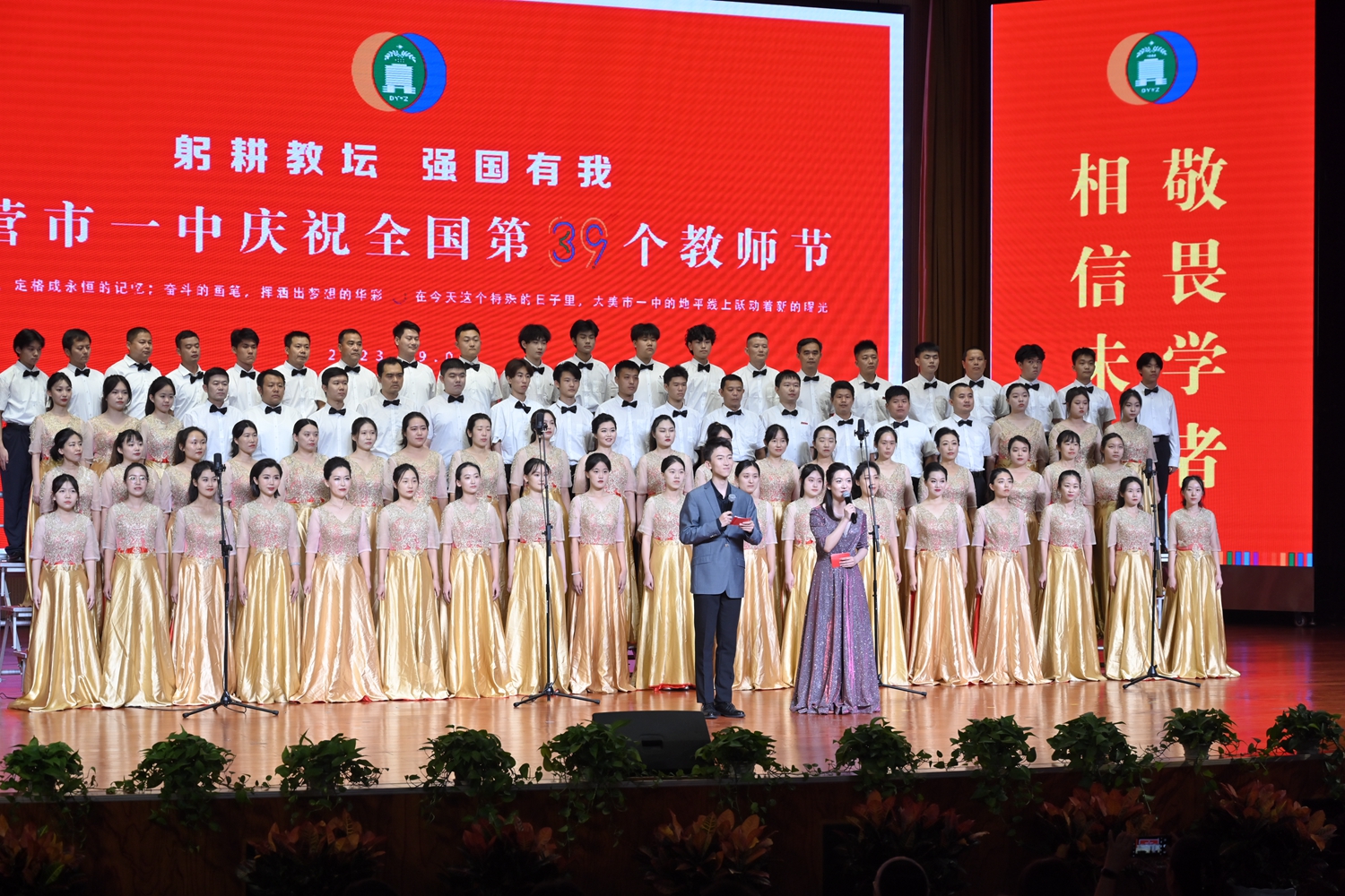 庆祝活动在嘹亮的大合唱 《不忘初心》中拉开序幕。赓续百年教育初心,担当东营育人使命,歌声唯美,声声入心坎。红色经典《保卫黄河》,以其史诗的结构、华丽的技巧、丰富的层次、壮阔的意境演绎出了一中合唱团的经典。我校长风合唱团曾获东营市教育系统合唱比赛一等奖,并远赴维也纳金色大厅演唱获一等奖。