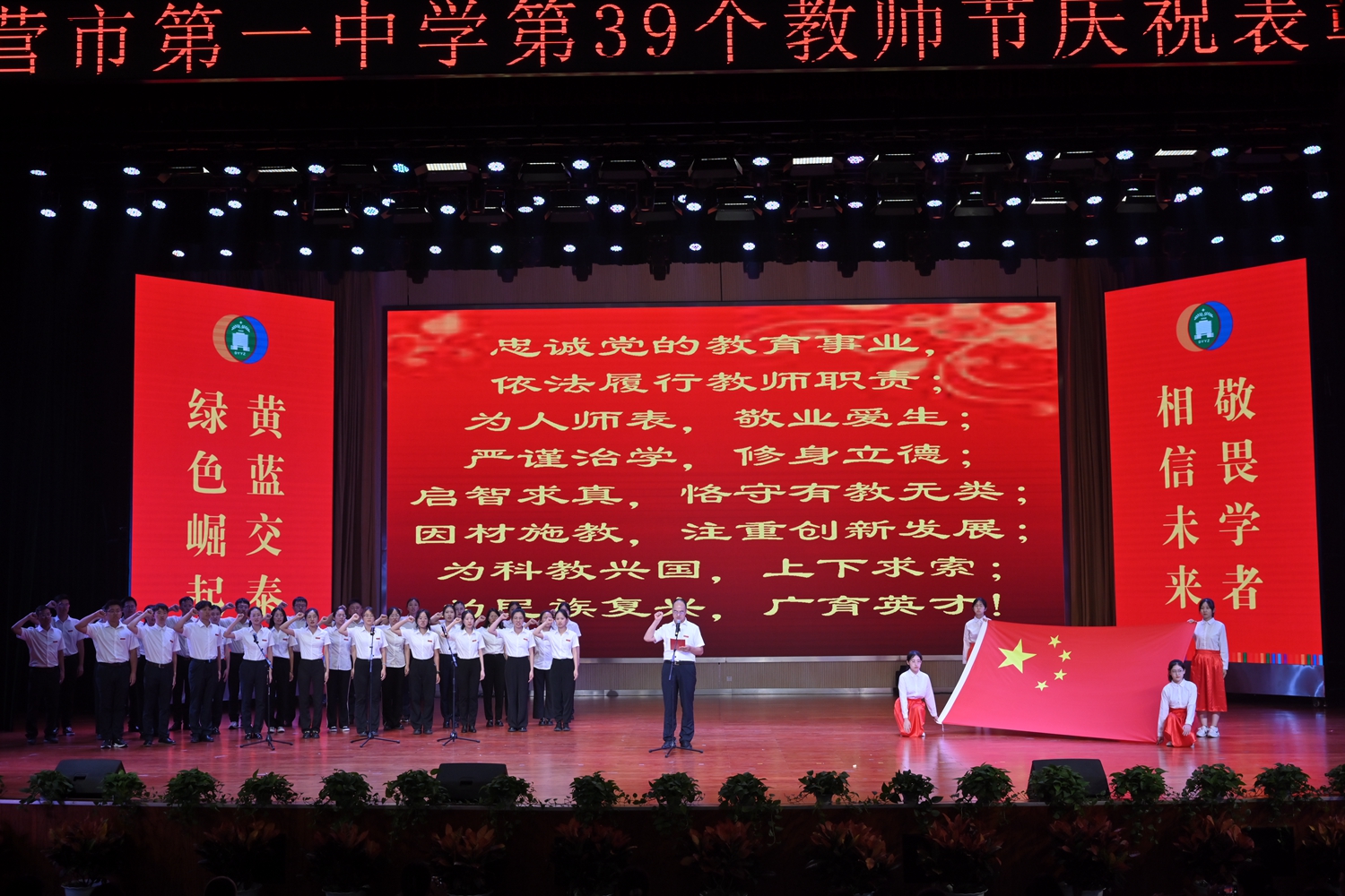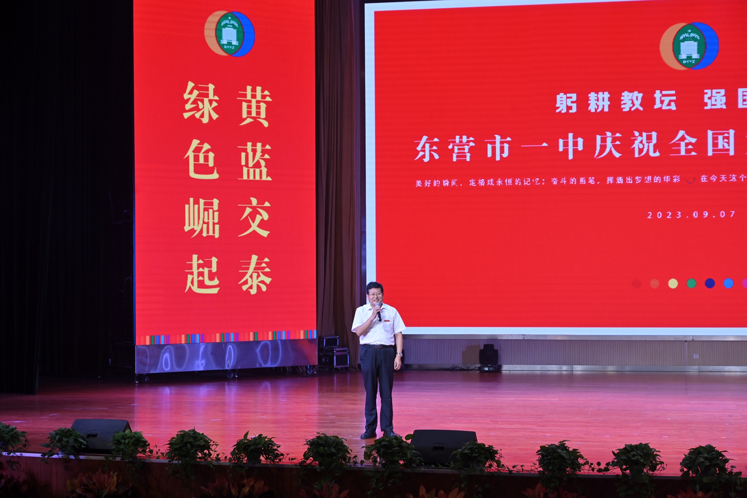 学校党委书记、校长史本泉发表热情洋溢的献词。史校长也是山东省首届、东营市唯一的最美政协人,他代表学校全体师生员工,向前来参加我校第39 个教师节庆祝活动的各位领导、各位嘉宾、各位家长代表表示热烈的欢迎和衷心的感谢。