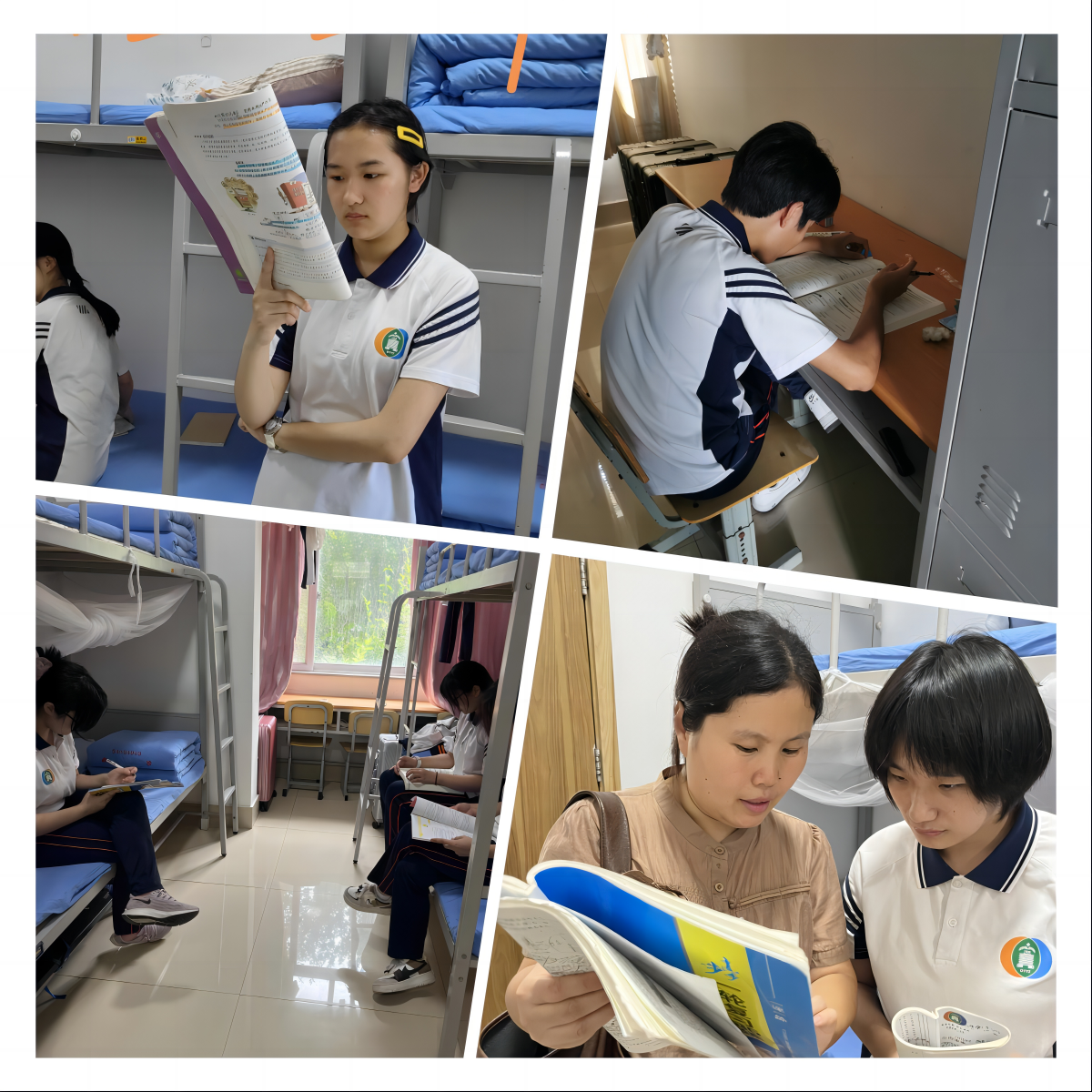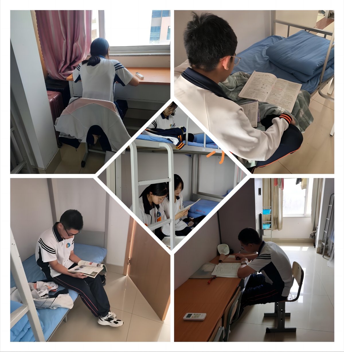 低楼层班级的一部分同学自发回到教室,集中午练一刻钟。有的同学利用这个时间完成了“数学每日规范练”,有的同学有计划地利用碎片时间弥补弱科,有的同学小组间在教室走廊相互讨论交流。同学们的努力感染着老师们,很多老师自觉地到教室给同学们解答疑难,维持学习秩序。
