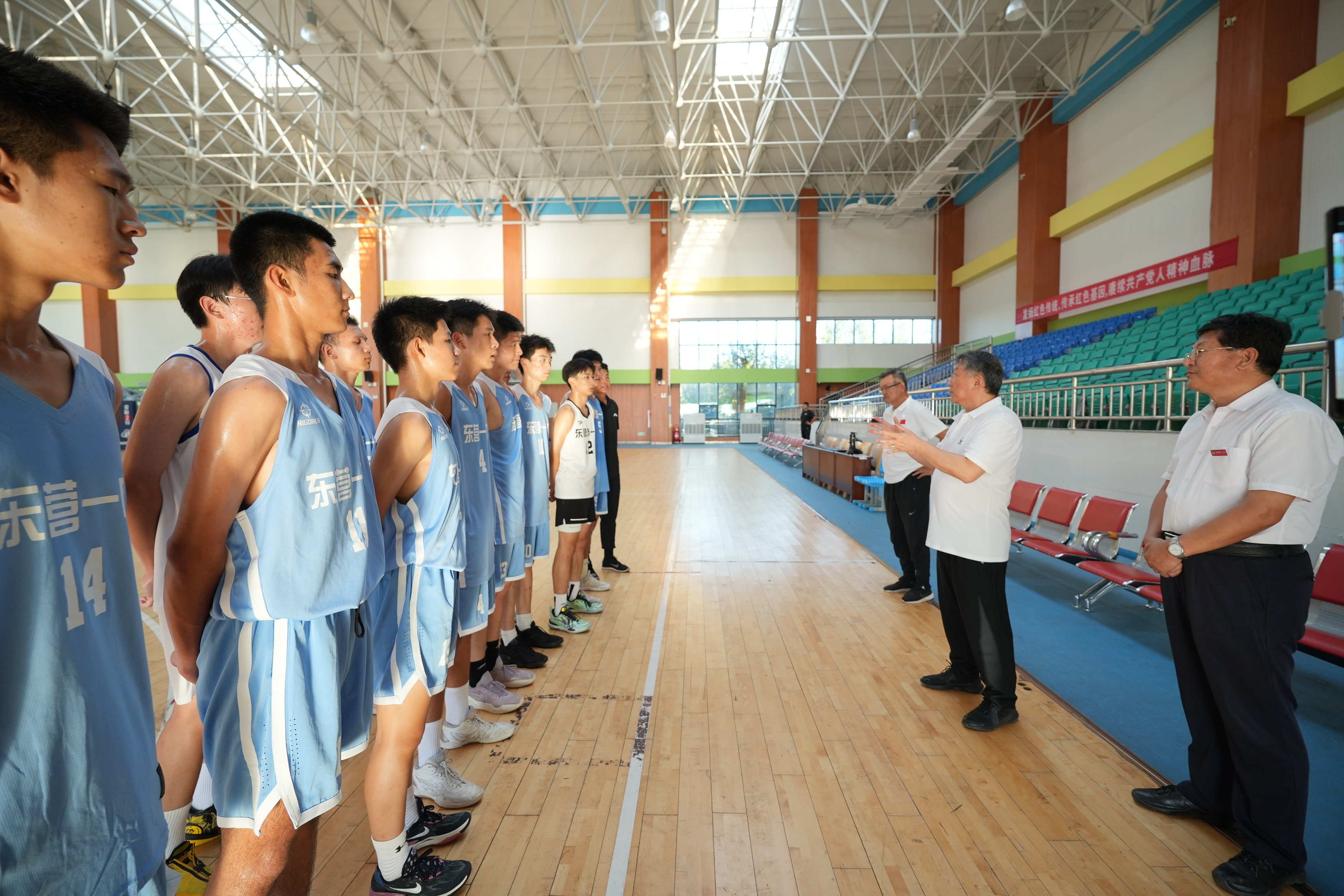 宫鲁鸣、王卫星一行在史本泉校长的陪同下参观了校园、校史馆、艺术馆、党建学馆和游泳馆,走进体育馆对我校篮球队员做了详细指导。