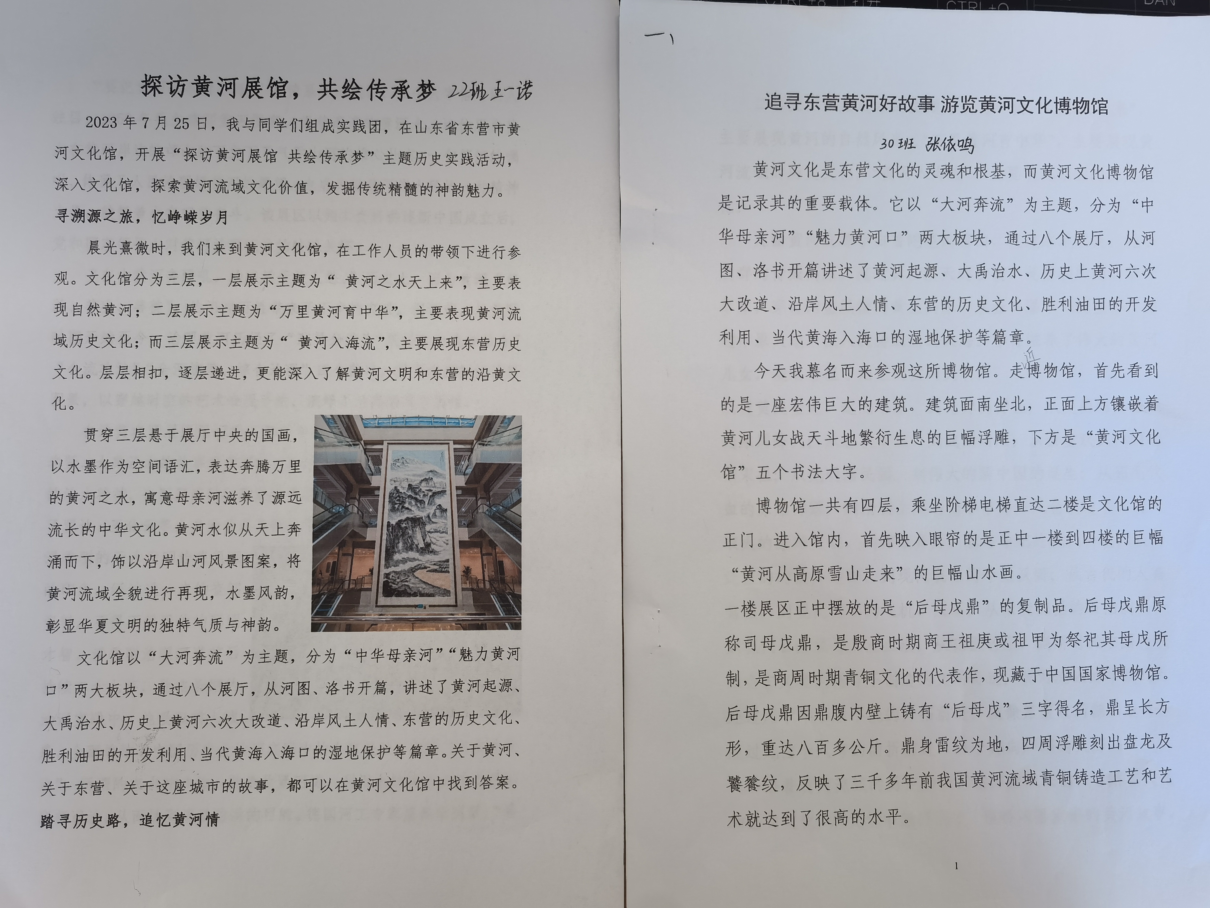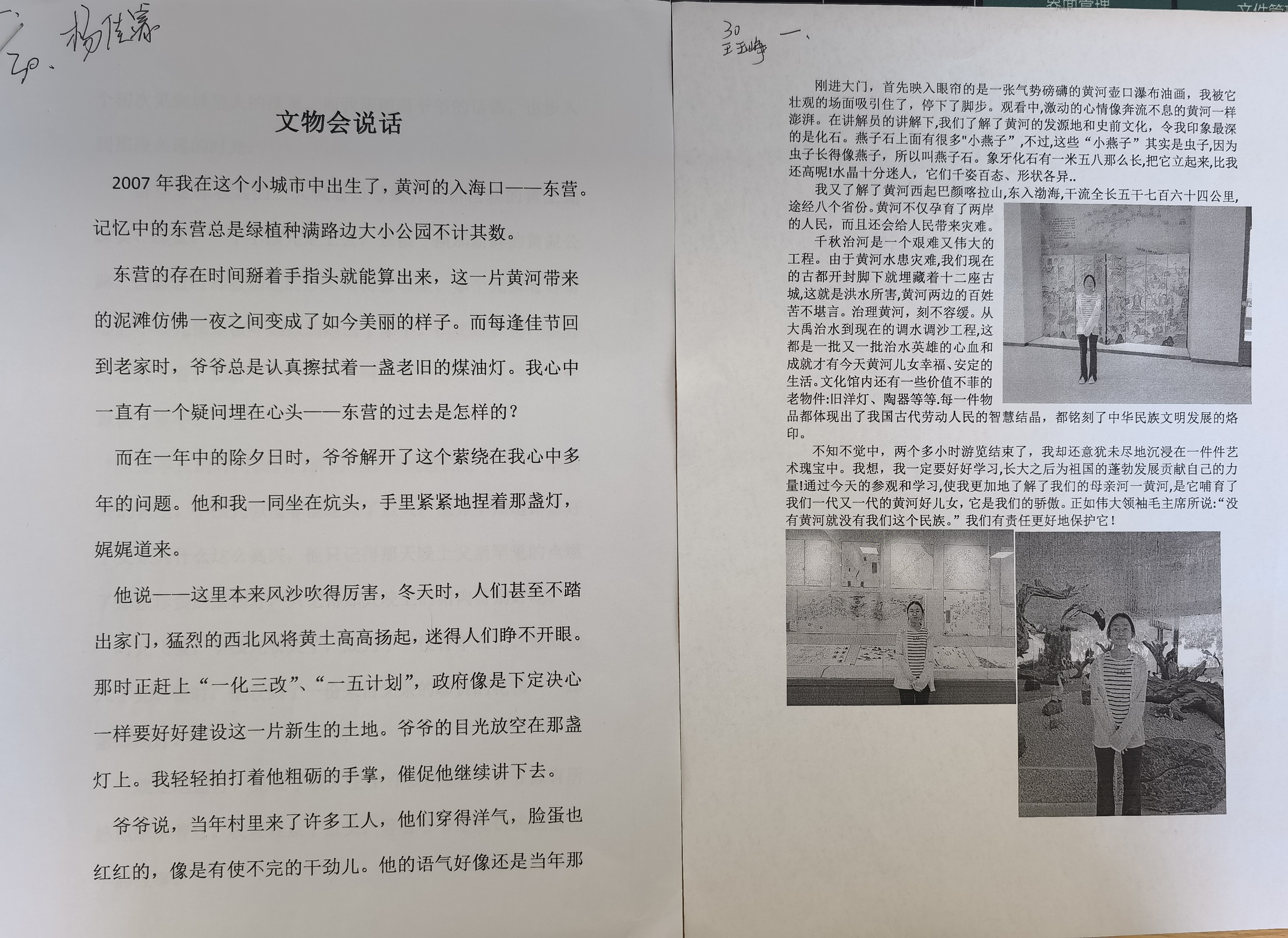 在《这里是黄河入海的地方——寻根博物馆》主题活动中,来自2022级22班的陈奕璇同学在她的《滚滚黄河流淌璀璨文明》一文中,讲述了她参观黄河文化博物馆的观后感,她在文中说“黄蓝交泰,绿色崛起,这是一场河海的相约,也是人类与自然共生的诗篇”,在叙述黄河入海与东营发展的良性互动的同时,也展现了市一中育人理念对一中学子的潜移默化的影响。“黄蓝交泰,绿色崛起”,不仅仅停留在市一中教学的世界观指导上,更融会贯通在市一中学子的行为举止中。