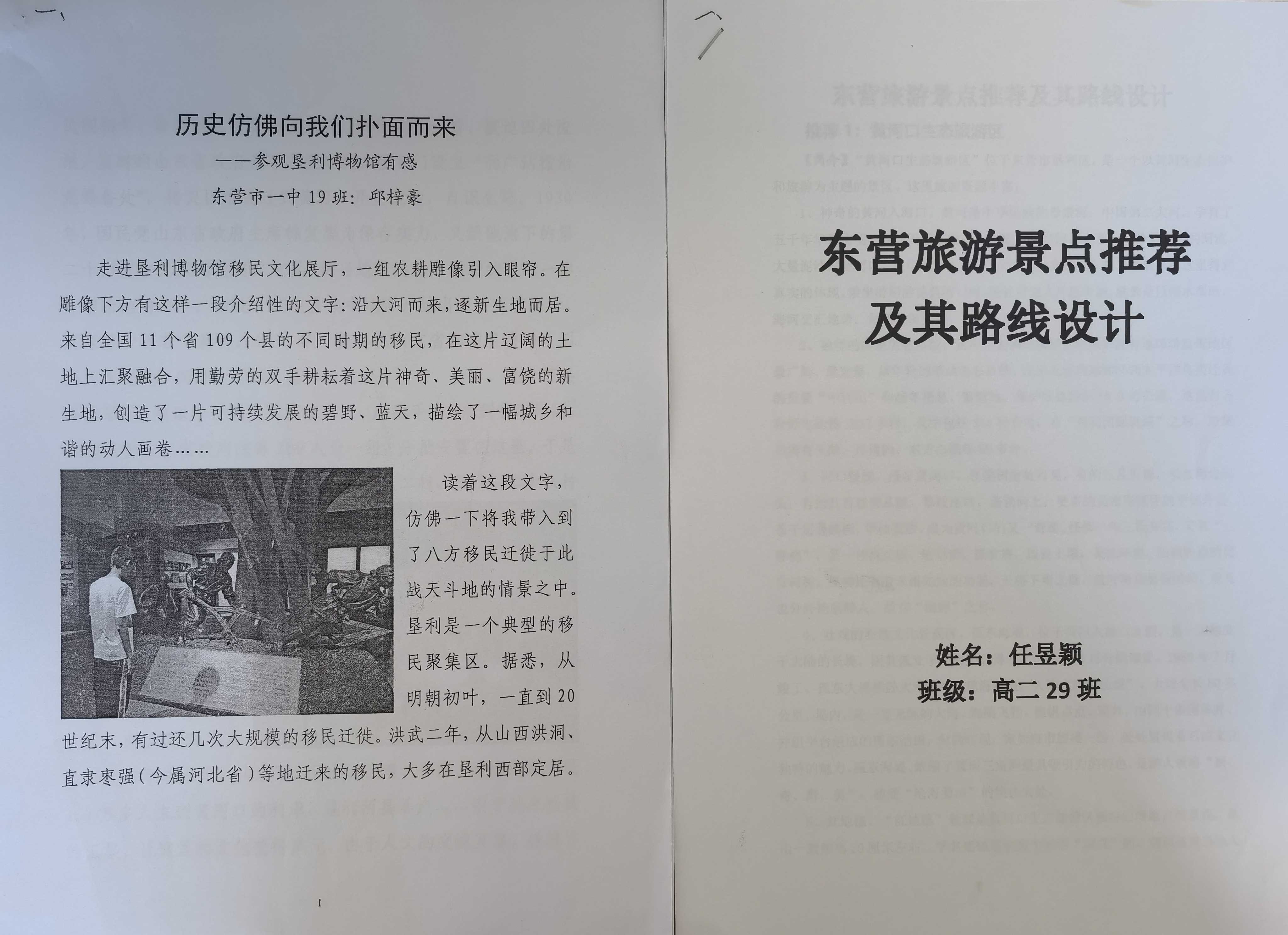 山东东营,因黄河入海而生,因油田开发而起,它用最宽广的胸怀,哺育了一批批热爱家乡、钟灵毓秀的莘莘学子。为促进学科教学与实践生活的融合,我校2022级历史组于2023年暑假期间开展了一系列历史乡土文化实践活动,得到了同学们的积极响应,踊跃参与。他们在本次的历史实践活动中,用最缱绻的依恋,用最饱满的笔触,用最炙热的感情,对家乡进行了全方面的探索与讴歌。