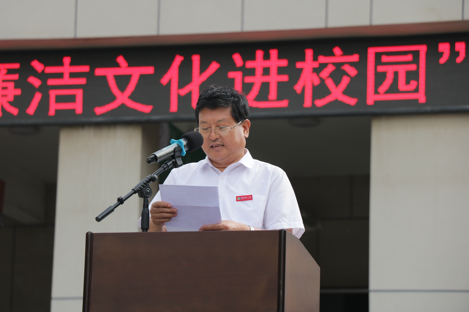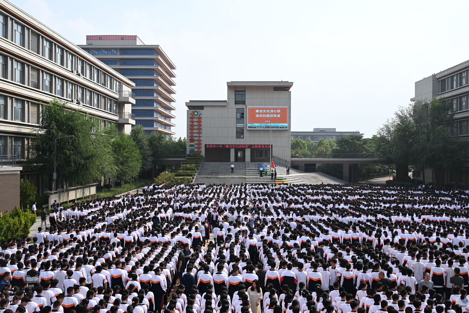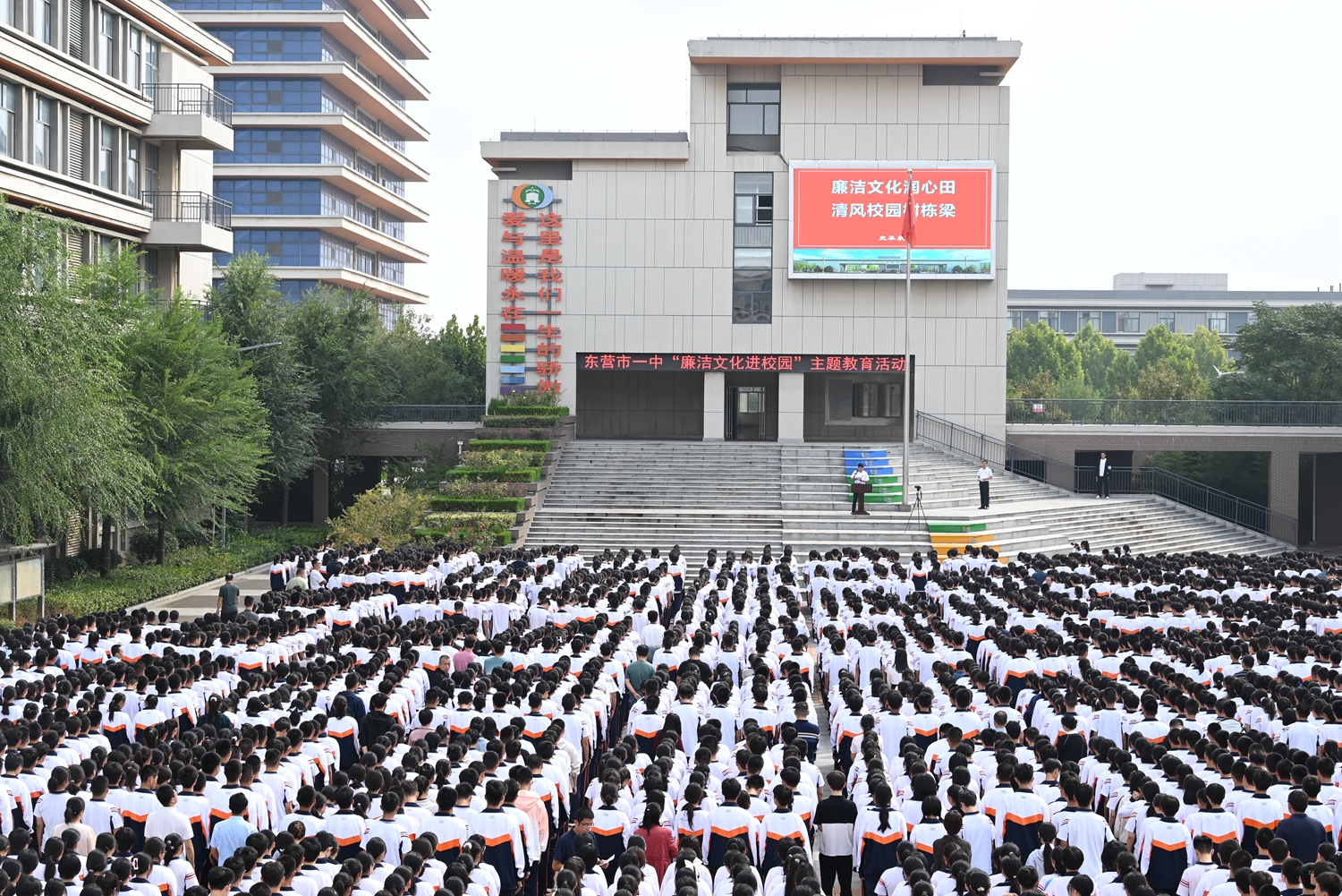 为了营造廉洁从教的育人环境,培育师生敬廉崇洁的价值观念,形成清廉干净的校园生态,9月25日东营市一中举行廉洁文化进校园主题教育活动。学校党委书记、校长史本泉发表题为《打造廉洁文化 ,建设清风校园》的主题讲话,学管处主任董海峰主持仪式。