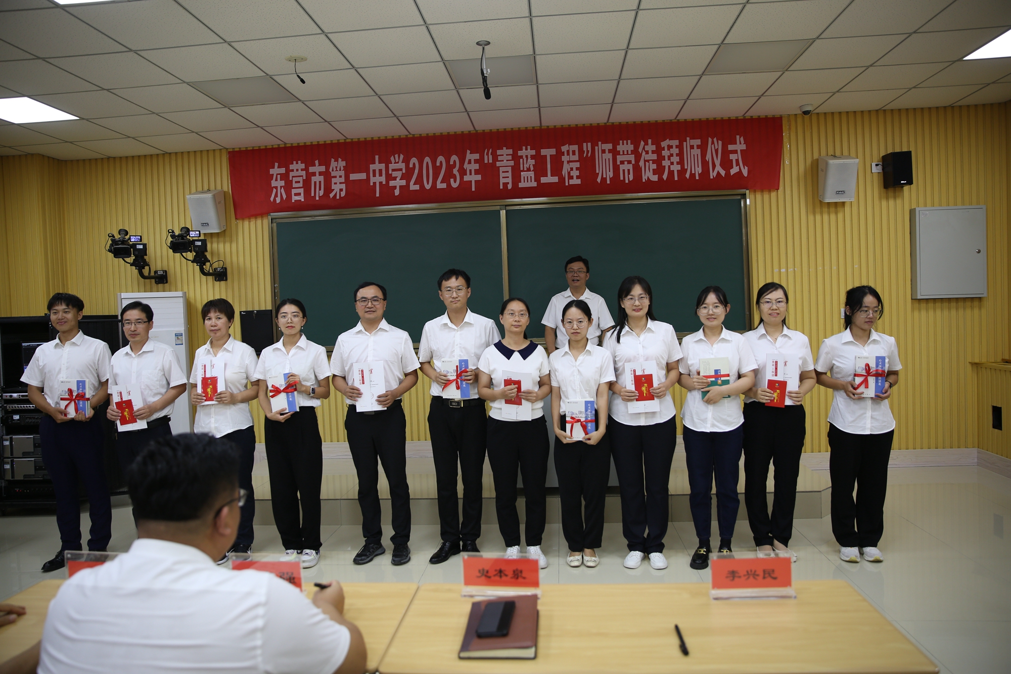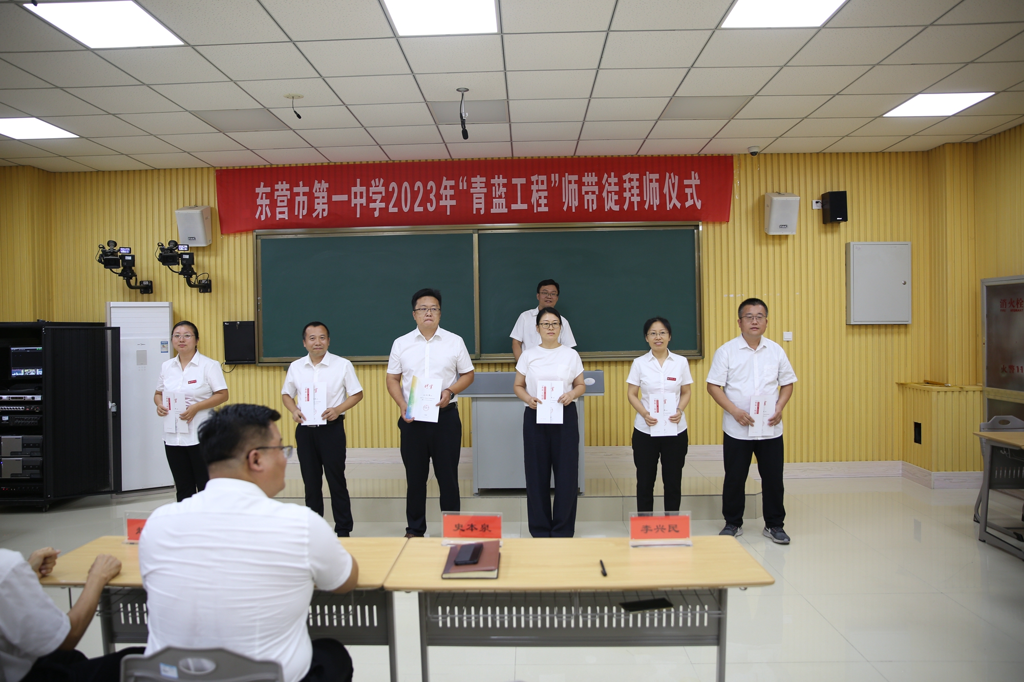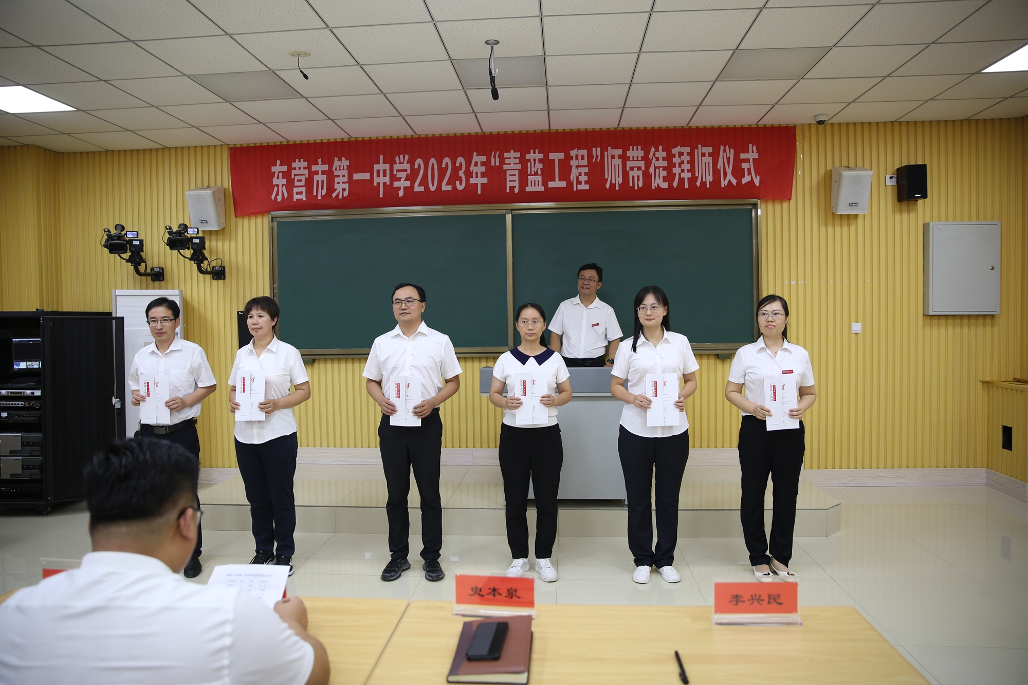 史本泉校长为指导老师颁发了聘书。一纸之约,明确了双方的任务,也表明了师徒双方共同学习、共同成长的决心。