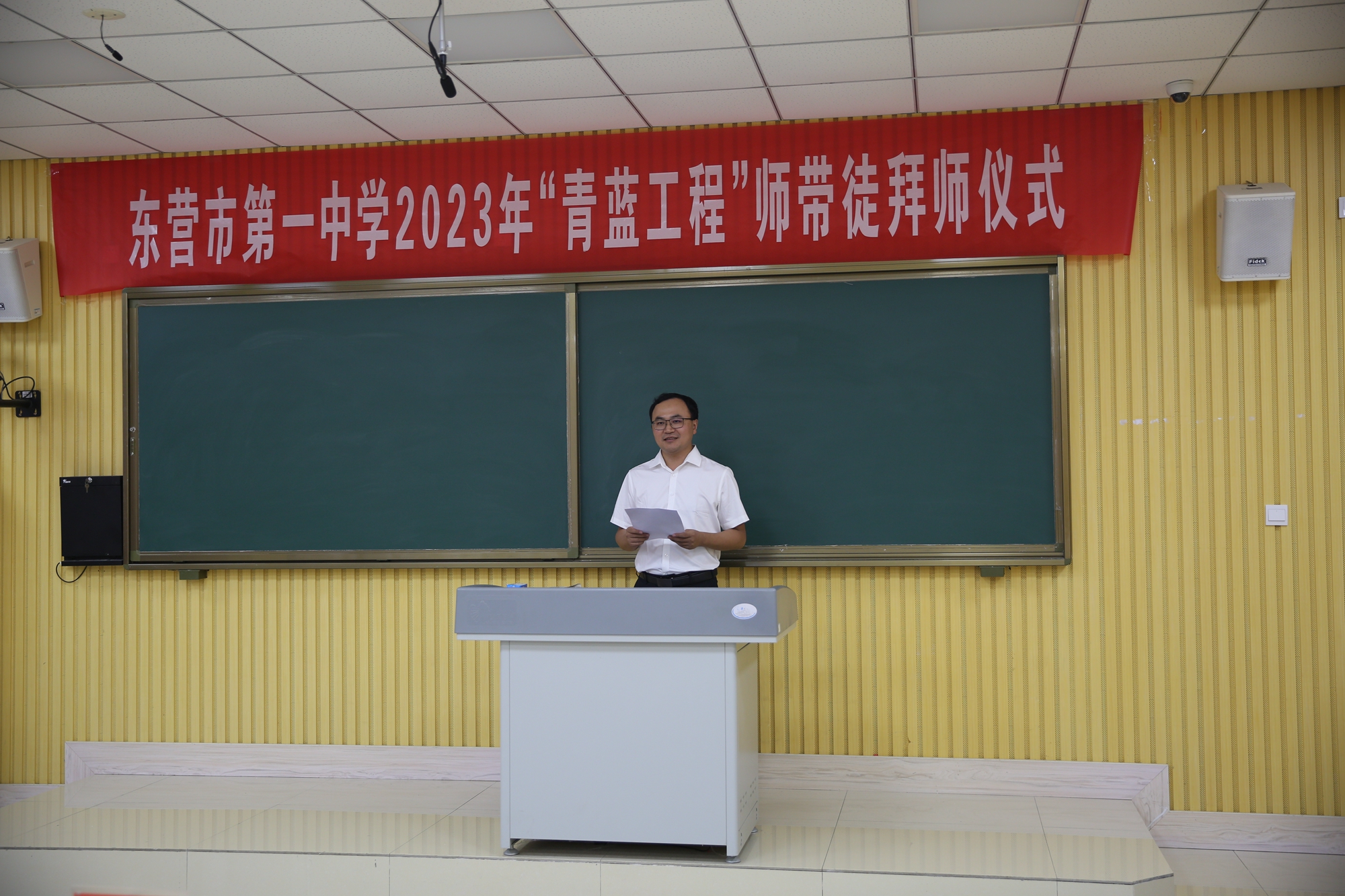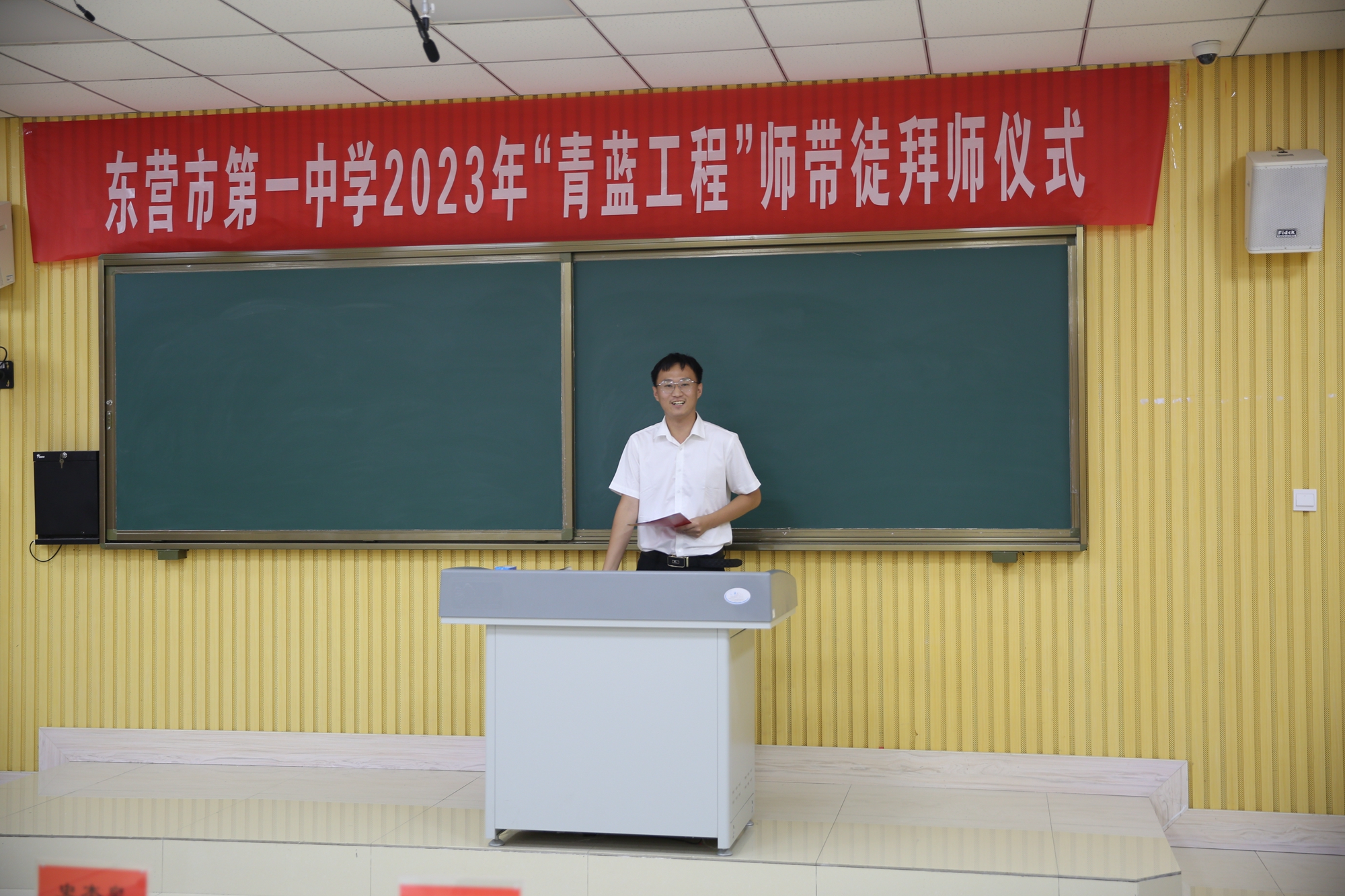 2023级语文教学组长胡计常老师代表全体师傅发言表态将会践行好传帮带的责任。