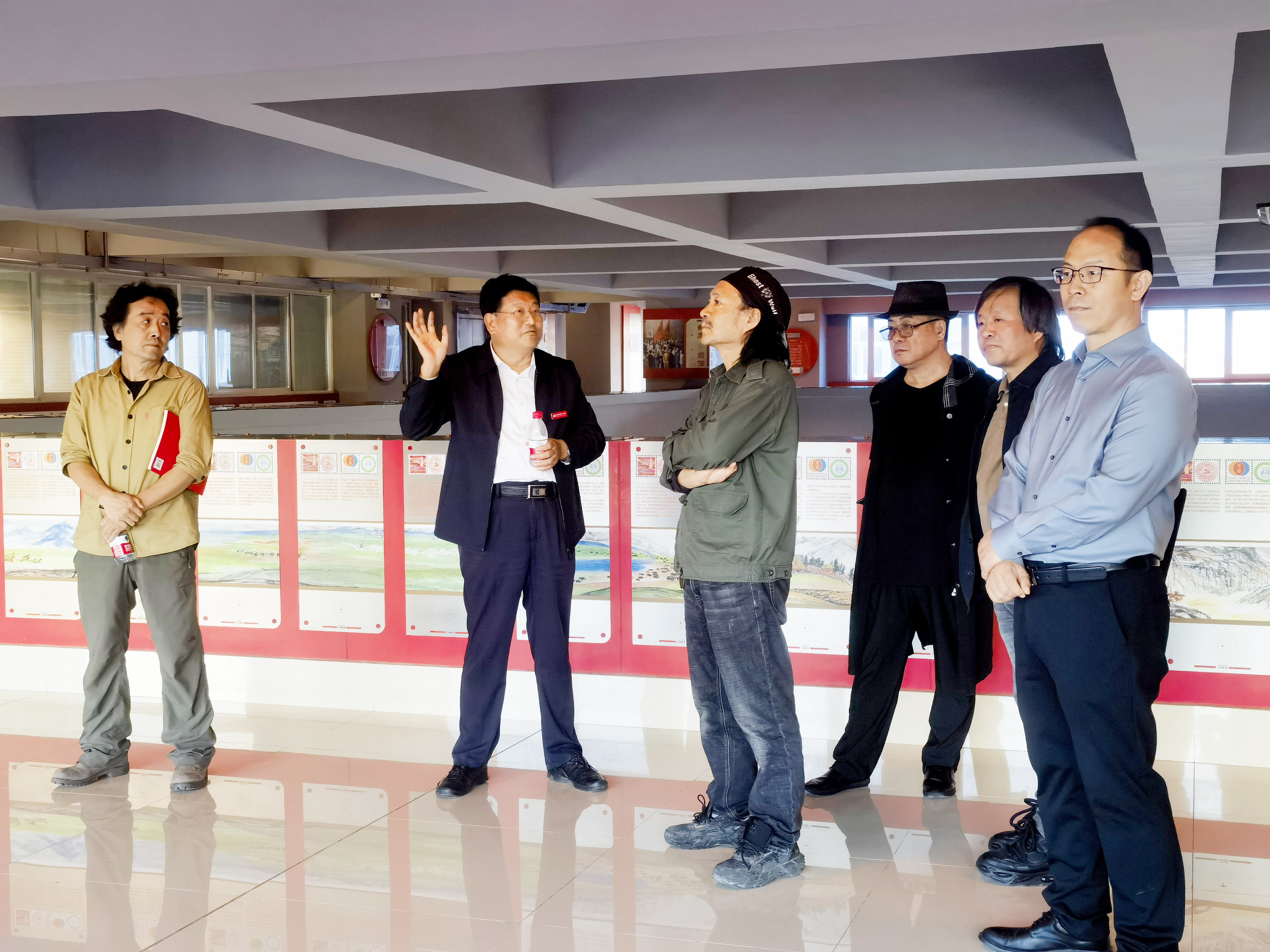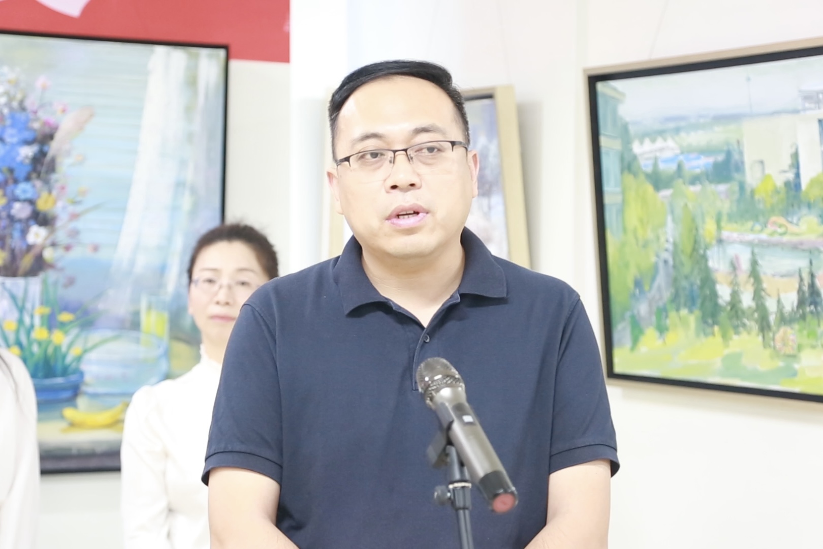 市一中美术组组长张训超介绍画展情况