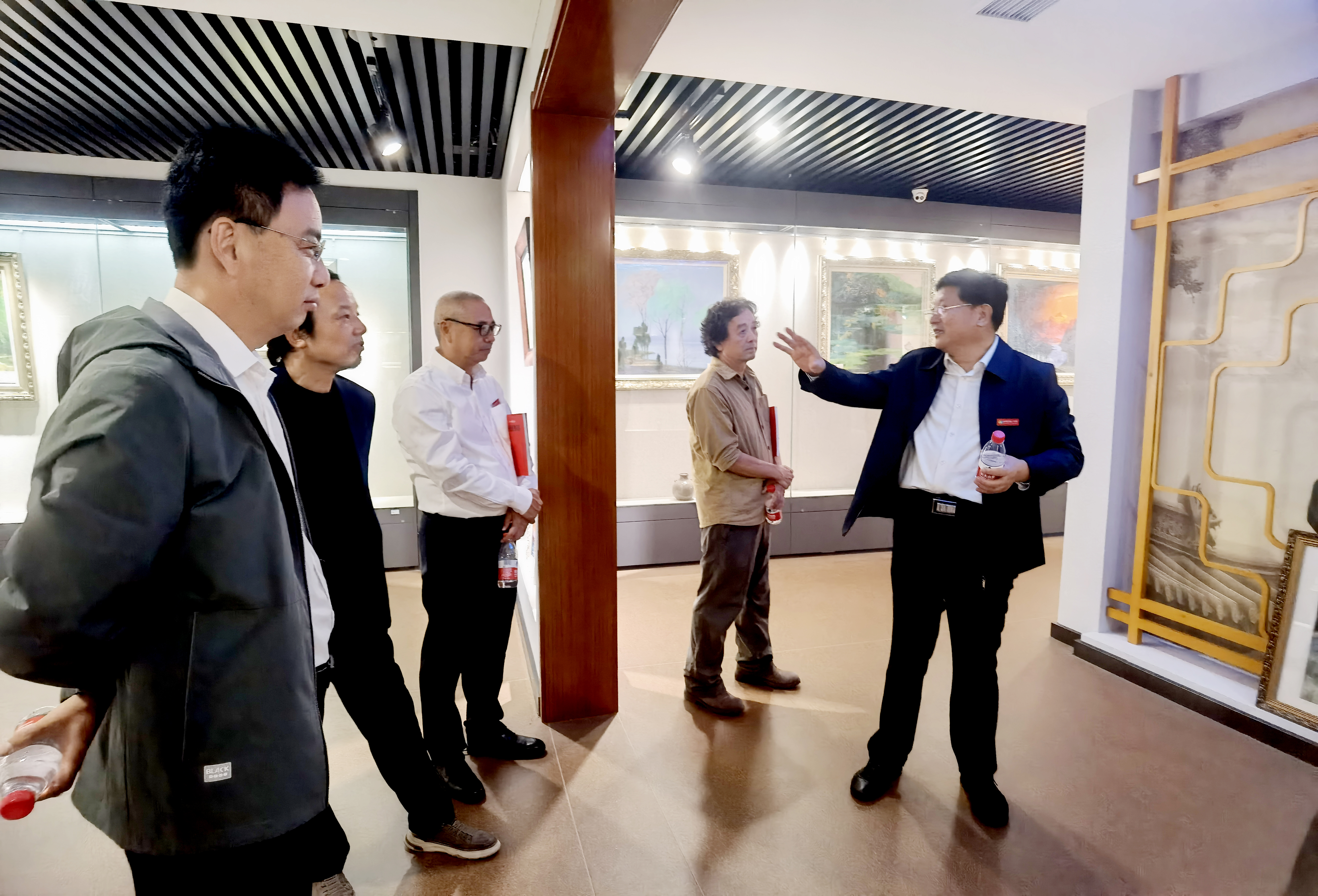 郑绍林画展开幕仪式结束后,嘉宾们在史本泉校长带领下参观校园,深深折服于市一中的校园文化。
