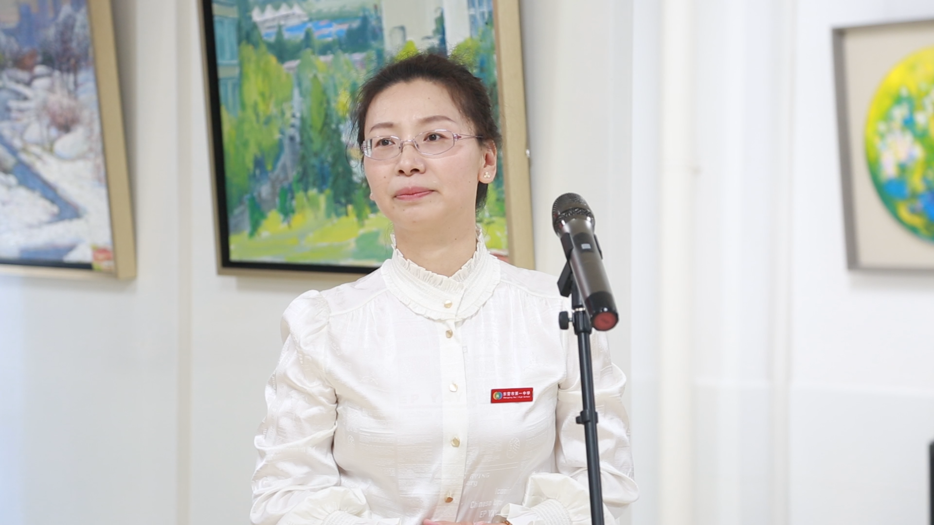 郑绍林老师在发言中,向前来观礼的各位嘉宾和领导表示感谢,表示要为普及和振兴东营地区艺术事业,为东营市文化艺术的繁荣发展做出自己应有的贡献。仪式上,市一中外籍教师及学生代表手捧鲜花,向郑绍林老师献花表达敬意和祝贺。