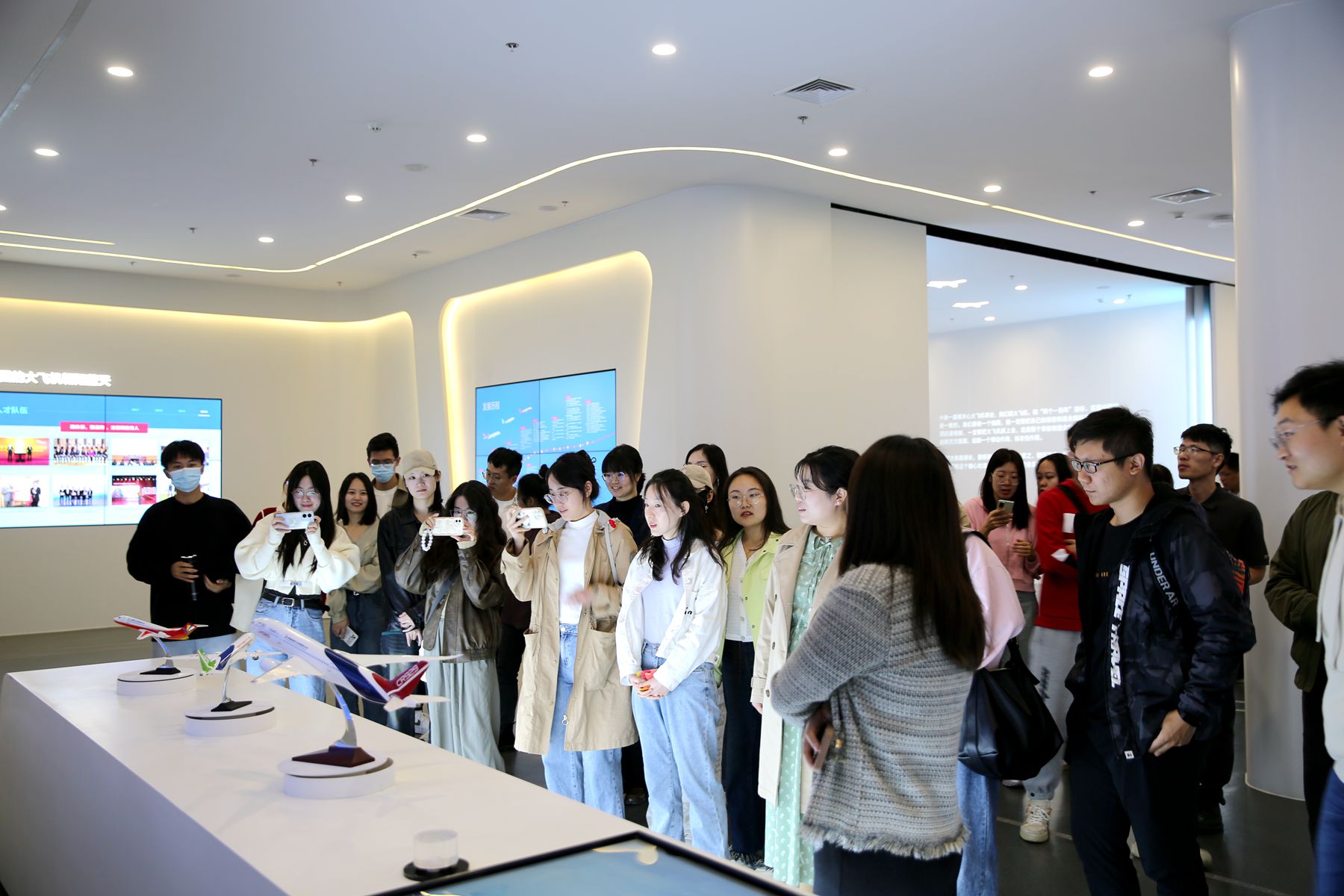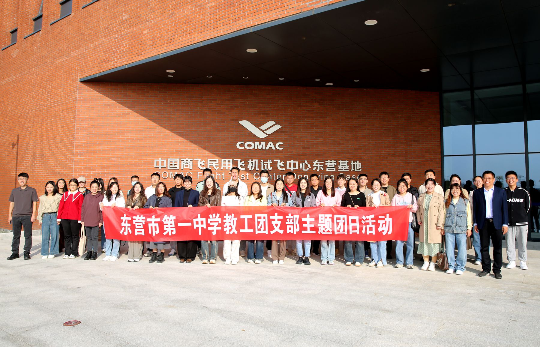 青年教师们一行首先走进东营商飞基地,了解了东营商飞的发展过程,感受到C919大型客机首飞任务圆满成功的喜悦,深刻领会习近平总书记系列重要指示精神以及当下大飞机事业发展的重要性。