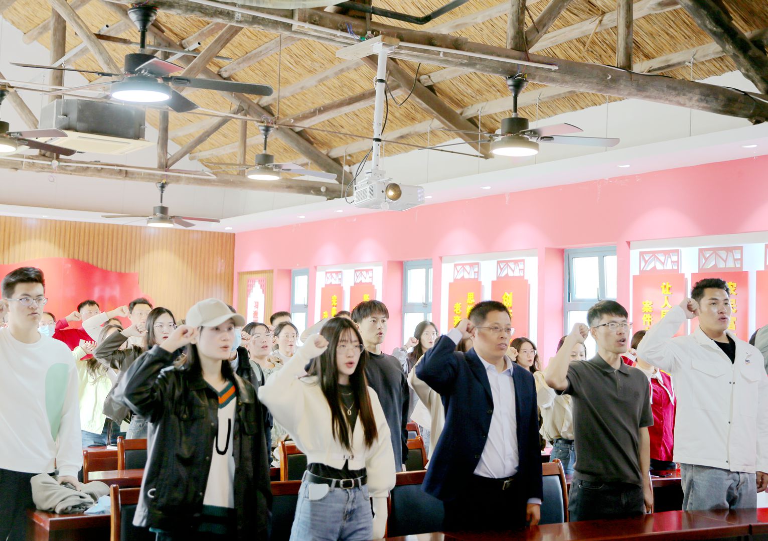 随后,青年教师们一行走进黄河口知青小镇,品味黄河文化内涵和军垦农垦知青等红色文化基因,深刻感受知青小镇中与新时代文化创意相融合、把知识青年艰苦奋斗的创新精神与新时代的创新发展相对接的特点。在红色大讲堂中,广大青年教师结合“学习二十大、坚定跟党走”的主题,重温入团誓词,高唱红色经典歌曲,尽展一中青年教师的蓬勃力量。