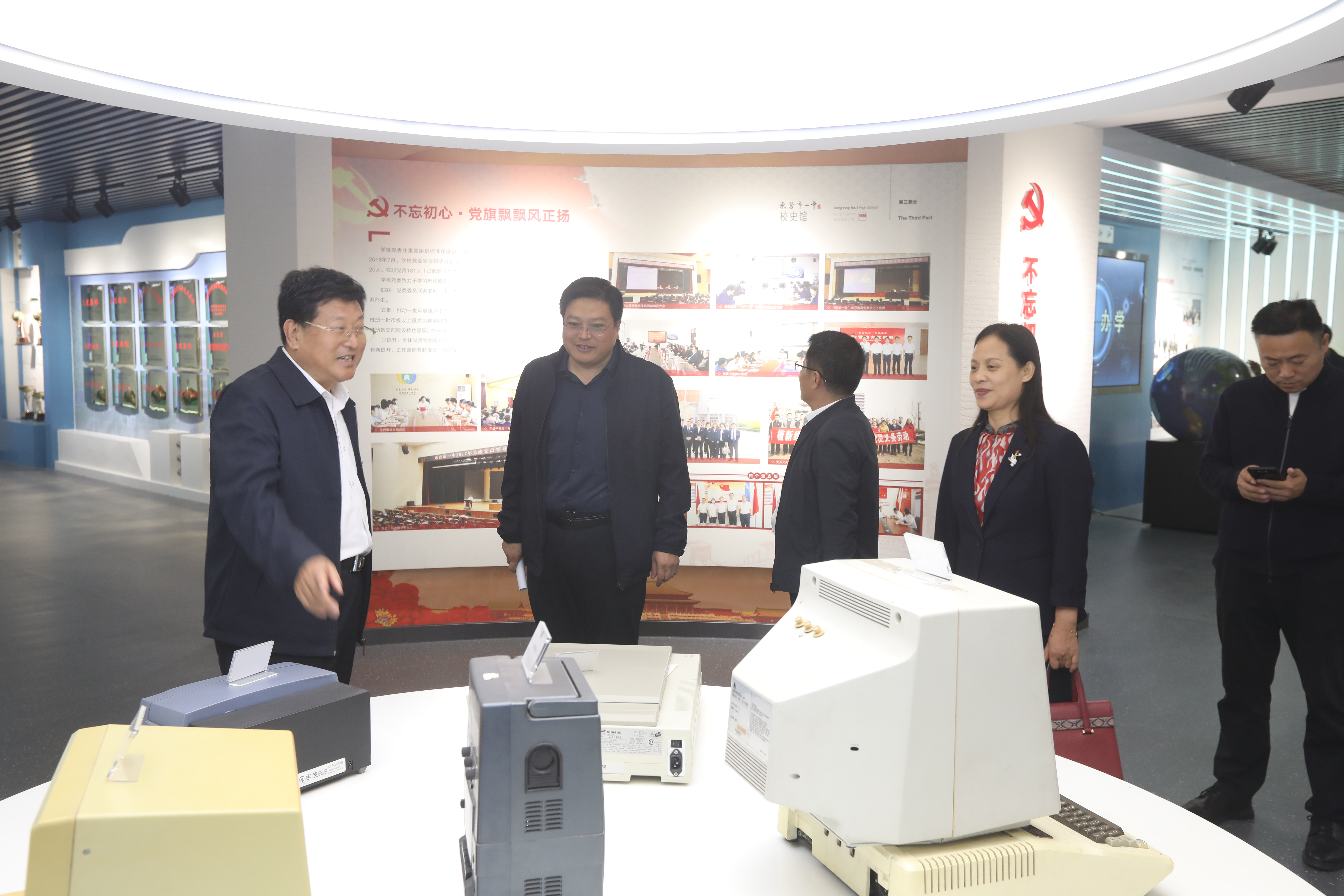 来访领导嘉宾一行在史本泉校长的陪同下,参观了市一中的校园、校史馆、艺术馆、党建学馆、军事学馆、宣言学馆等,对市一中优美的校园环境和优异的办学成绩给予了高度赞誉。