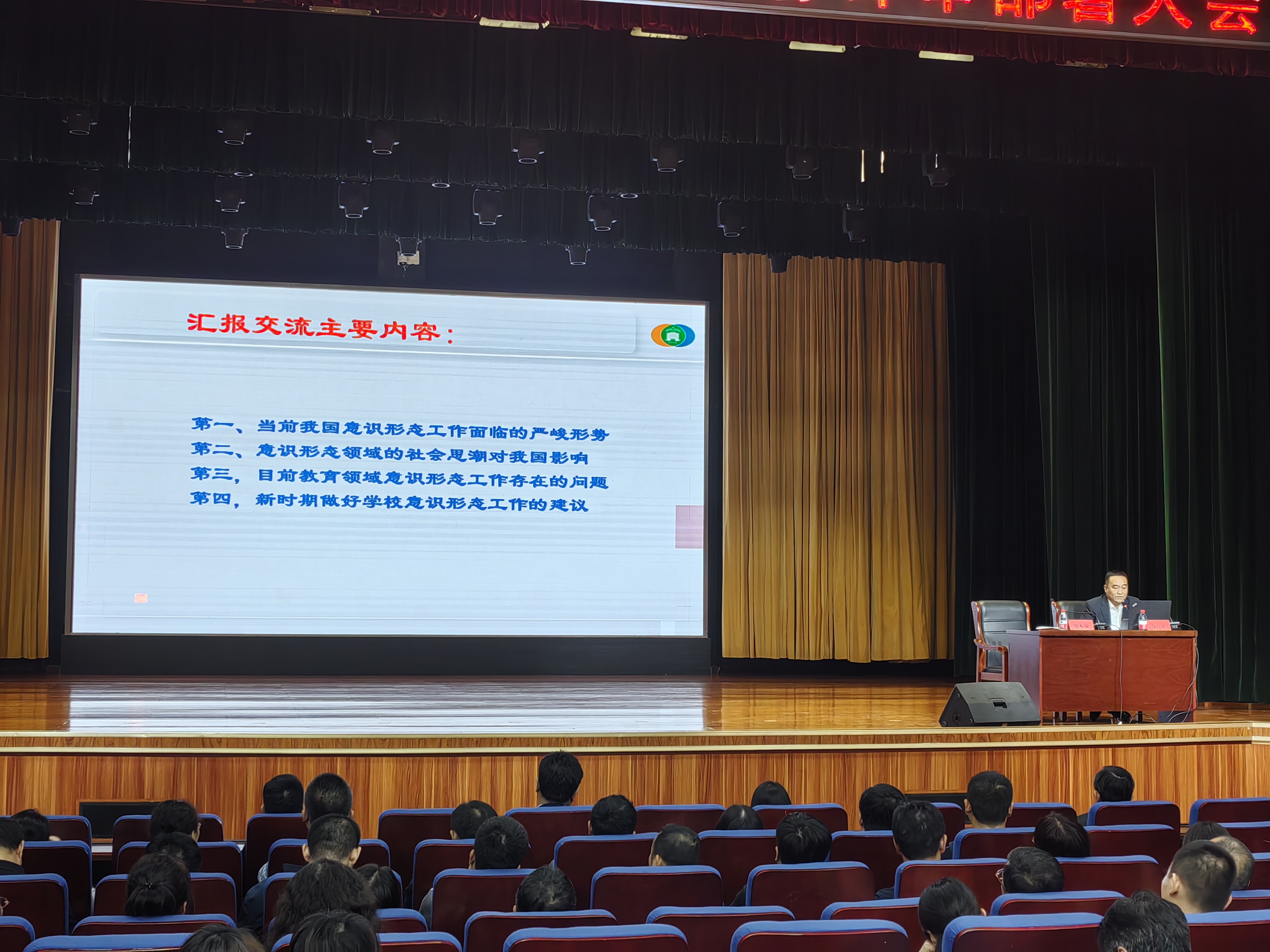 李主任从深刻认识意识形态工作的极端重要性入手,深入分析了当前教育领域在意识形态方面的新形势新任务。他指出学校作为意识形态斗争的前沿阵地,要通过加强政治理论学习、思想道德教育等形式增强广大师生政治鉴别力和政治免疫力。