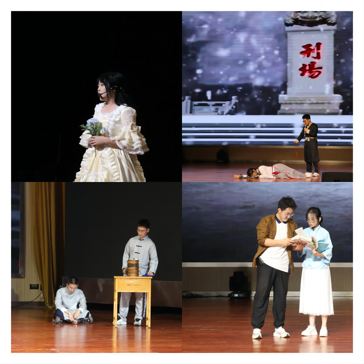 青春演绎时代精彩,矢志不忘家国情怀。研读经典,演绎经典,改编经典,会帮助同学们从经典中汲取爱国情怀与青春担当的营养,厚植文化自信。《红楼梦》《雷雨》《记念刘和珍君》《小二黑结婚》《茶馆》《氓》《鸿门宴》等经典作品搬上舞台,达到了以演促学,以美育情的效果。精心打造的台词、专业的舞台设计、逼真投入的表演也为演员们赢得了场下观众热烈的掌声。