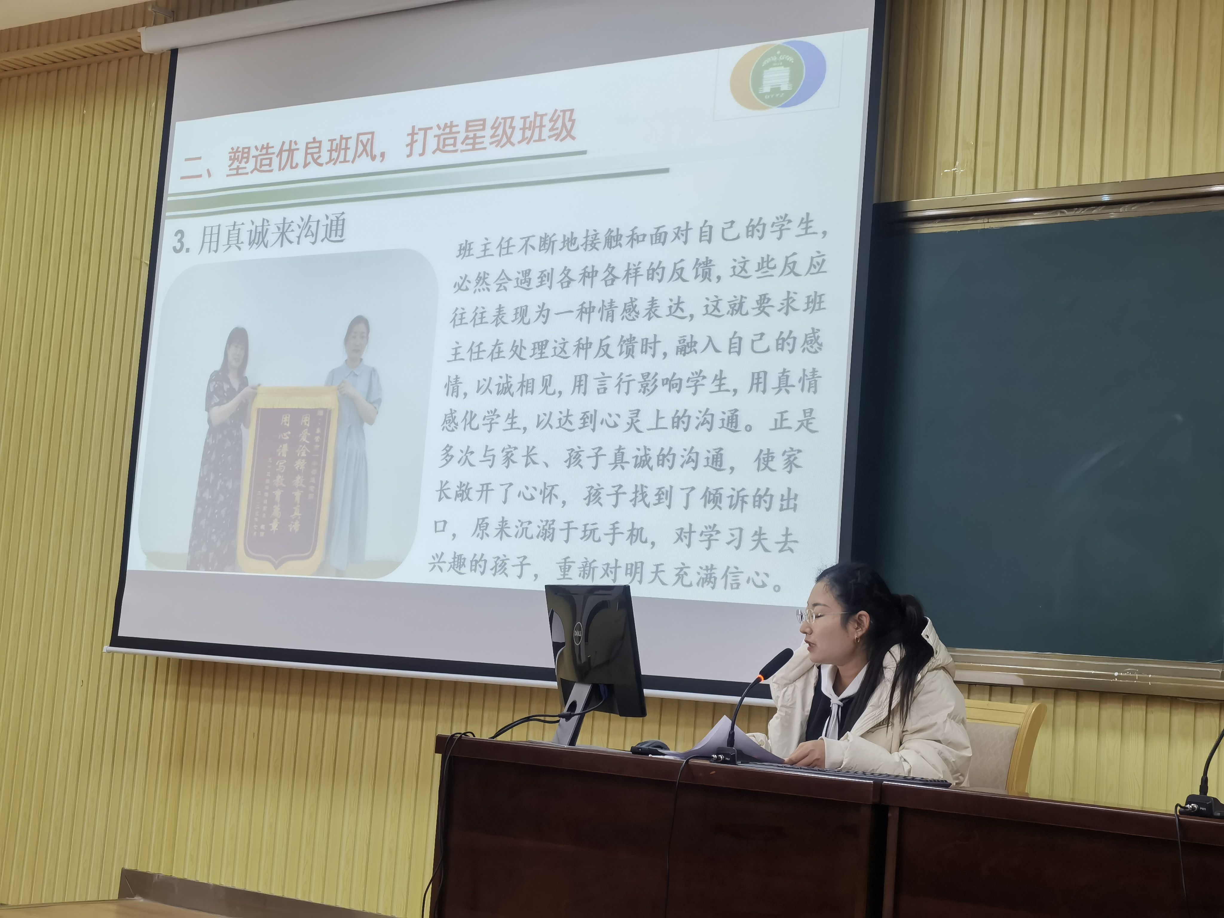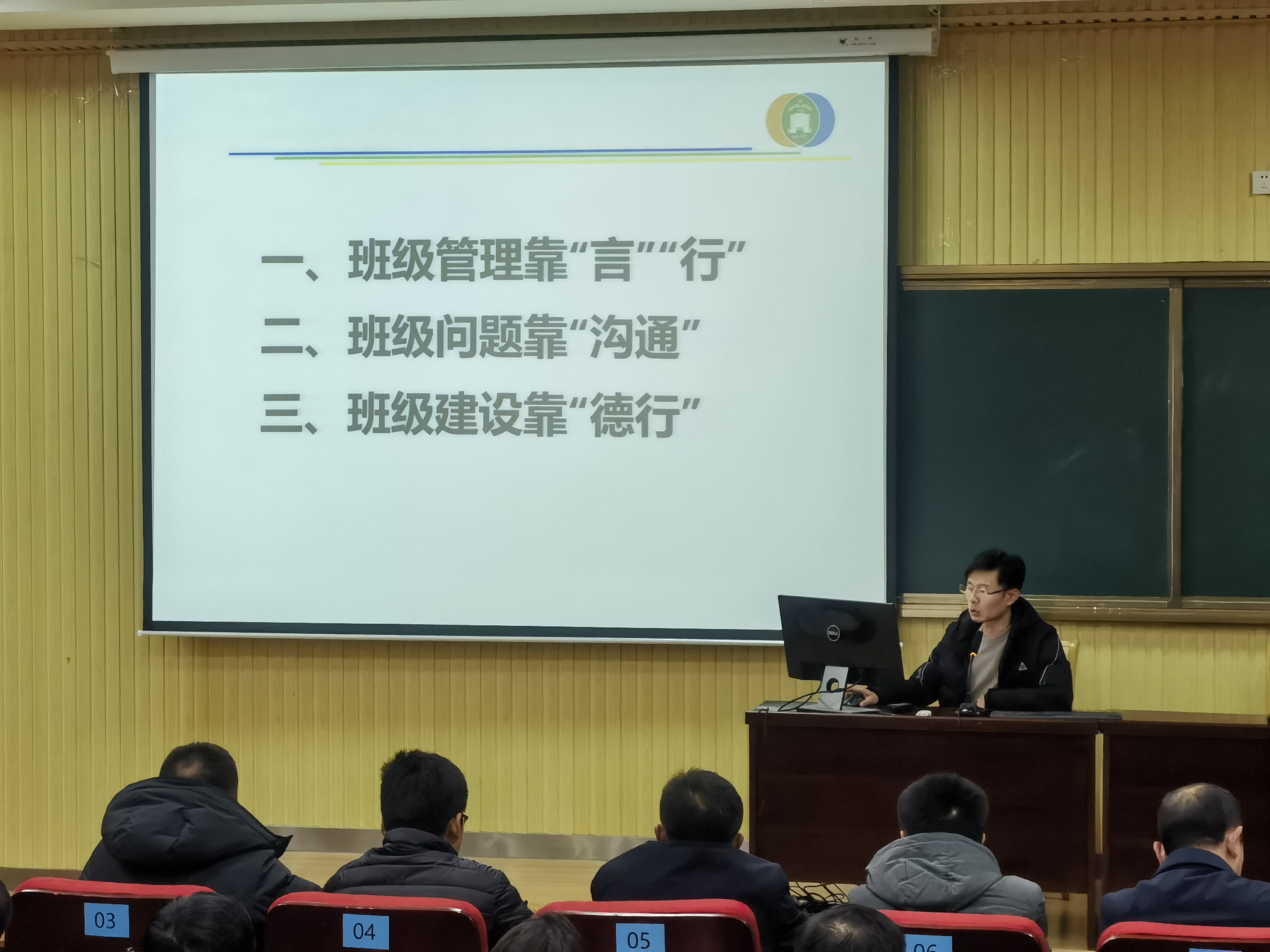 郭学诗老师做了题为《班级问题之“沟通”》的报告,郭老师从班级管理的三个方面展开汇报。在班级管理中,要善于“言”,严于“行”,将要求落到实处;要学会倾听,有效沟通,使得学生真正信服;努力提升自身修养,言传身教、立德树人,赢得学生的尊重和认可。如此才能更好地开展班级管理工作。