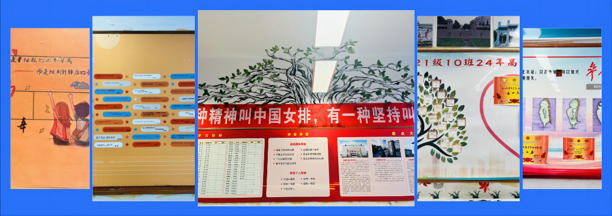 38个班级在班主任的带领下,用心布置了教室。一个个誓词横幅,提高了学生的责任意识,激励了学生的学习热情;侧柱上精选的每一条标语都充满了正能量,目之所及,鼓舞人心;有的班级贴了温暖祝福语,一张张纸条书写了同学们的梦想;有的班级把目标大学做成文化墙,让同学们对未来之路有了清晰的认识;有的班级以书法元素为载体,把班级公约、班级口号融入到学习生活之中。一面面班级文化墙熠熠生辉,一朵朵“班级之花”竞相开放。经过评委们的参观、打分,最终2班等10个班级获得“班级文化建设优秀集体”。