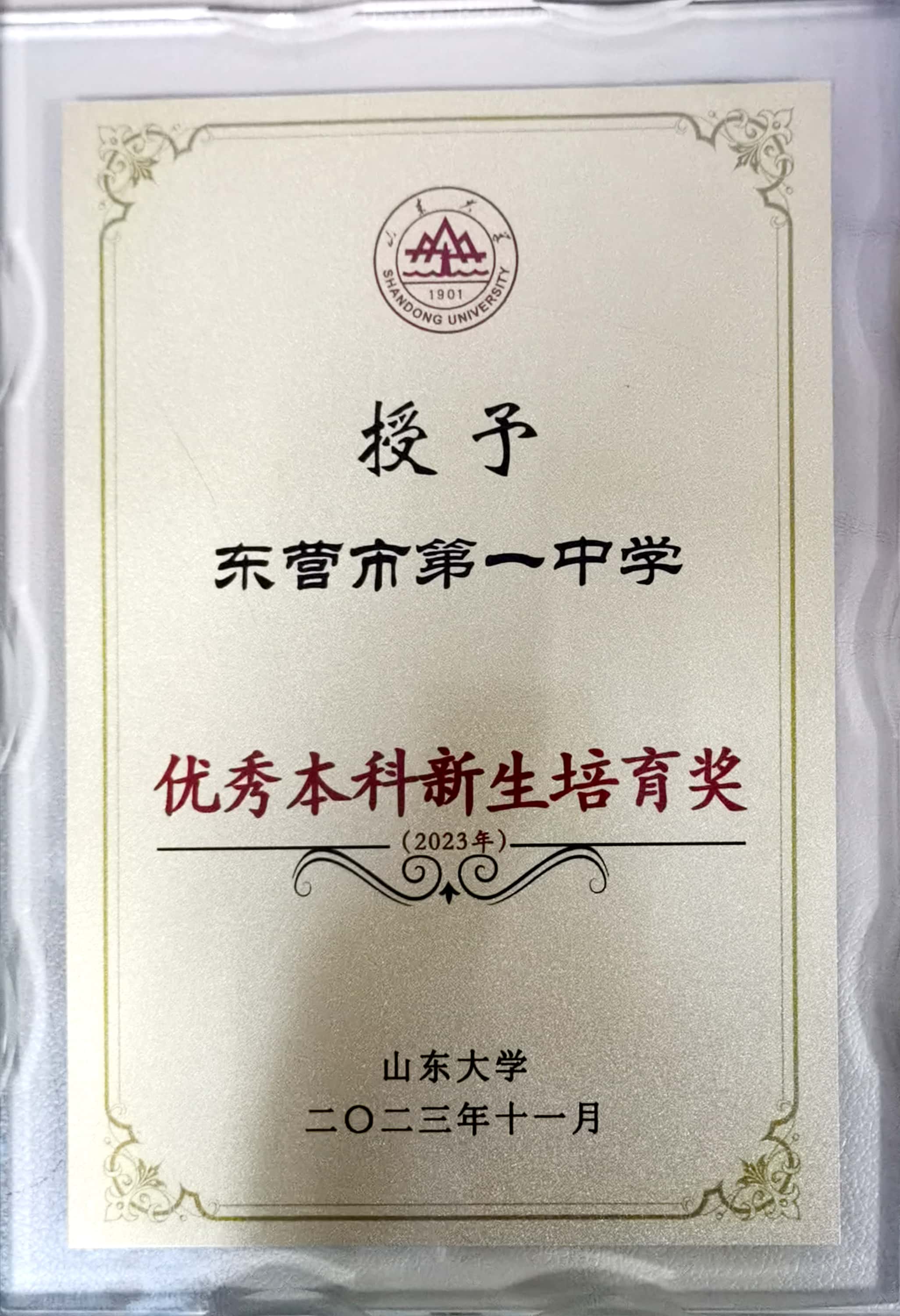 山东大学同时授予我校两项含金量超高的荣誉,充分体现了山大对我校办学水平及育人质量的认可与肯定,同时这也是对我校的鼓励与鞭策。我们将珍惜荣誉,继续努力。力争培养一批又一批基础学科拔尖人才,为东营教育添彩,为齐鲁明天增辉。