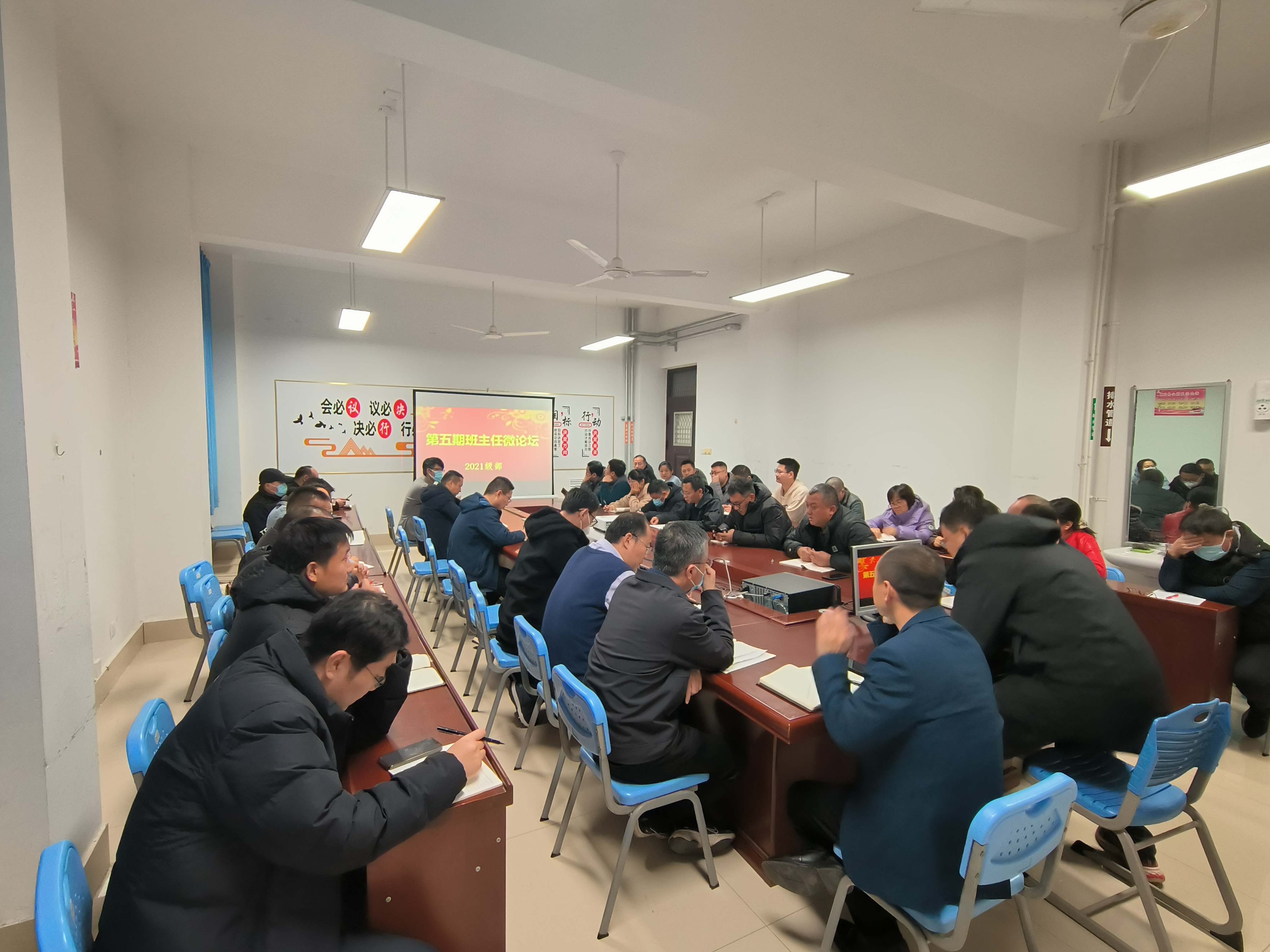 12月10日晚上7:00,2021级在三楼会议室召开了第五期班主任微论坛,此次微论坛的主题为“打造优秀班集体”。论坛由级部副主任韩磊主持,2021级全体班主任参加了活动。