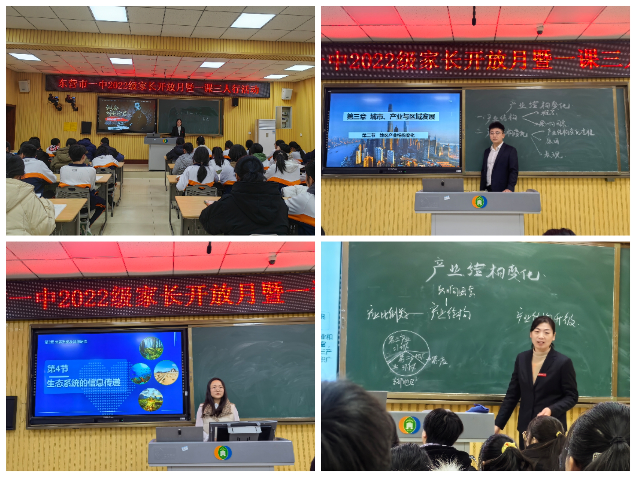 为了让家长更好地了解学生在学校的学习、生活状况,从而真正实现家校联手,合力为孩子们打造更优质的教育环境,东营市第一中学2022级部举行了持续两周的家长开放日暨“一课三人行”活动。