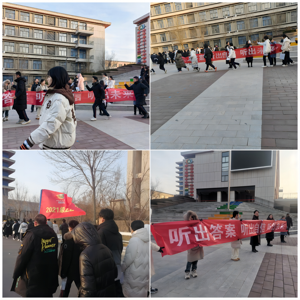 不畏寒冬,跬步千里,考前一晚,各班召开主题班会,各班级就考场安排、考试具体时间节点、行进路线等做了具体的安排,同时各班通过各种形式为同学们加油助威。