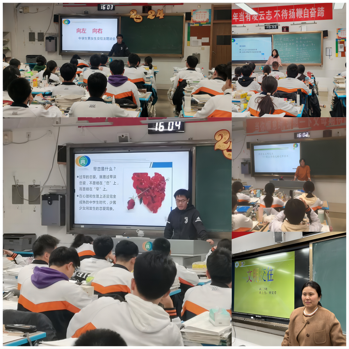有的班级通过丰富详实的社会案例解读,帮助学生认识到高中生文明交往的重要性和必要性;有的班级则帮助学生明确文明交往与不文明交往的边界;有的班级在班主任引导和学生积极发表观点的基础上形成了本班文明交往的指导手册;有的班级通过提问方式层层深入到每个环节之中,引导学生学会与异性正常交往,建立正常的同学友谊,让学生在交流互动中接受教育和熏陶。