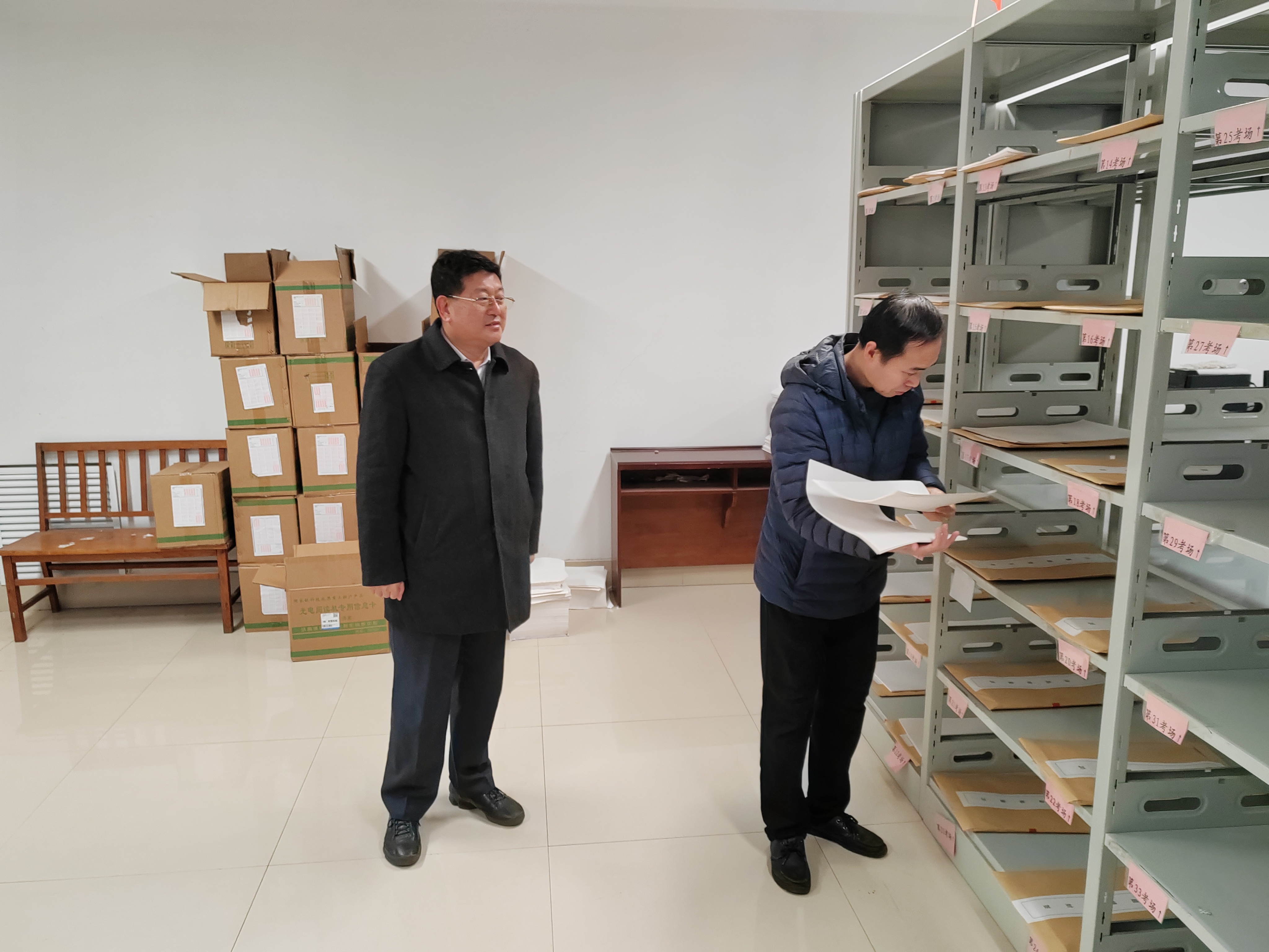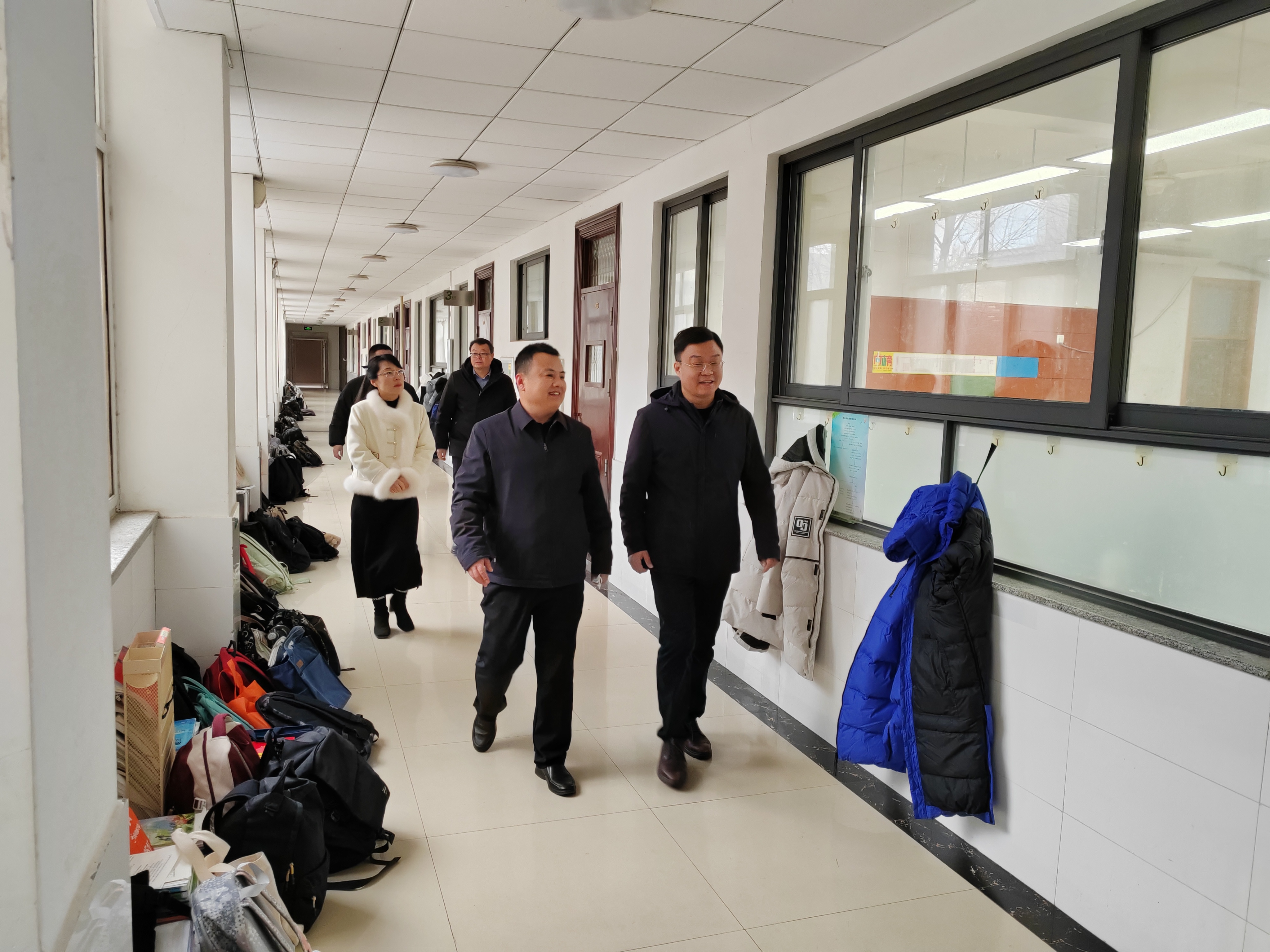 1月20日,市教科院高中室副主任刘兴强,教研员于见宝、付林娜到市一中督导期末考试工作。校长史本泉亲自巡视了保密室、考务室和各考场,教务处主任李兴民,高二级部主任李中刚、高一级部副主任姚继亮陪同检查。