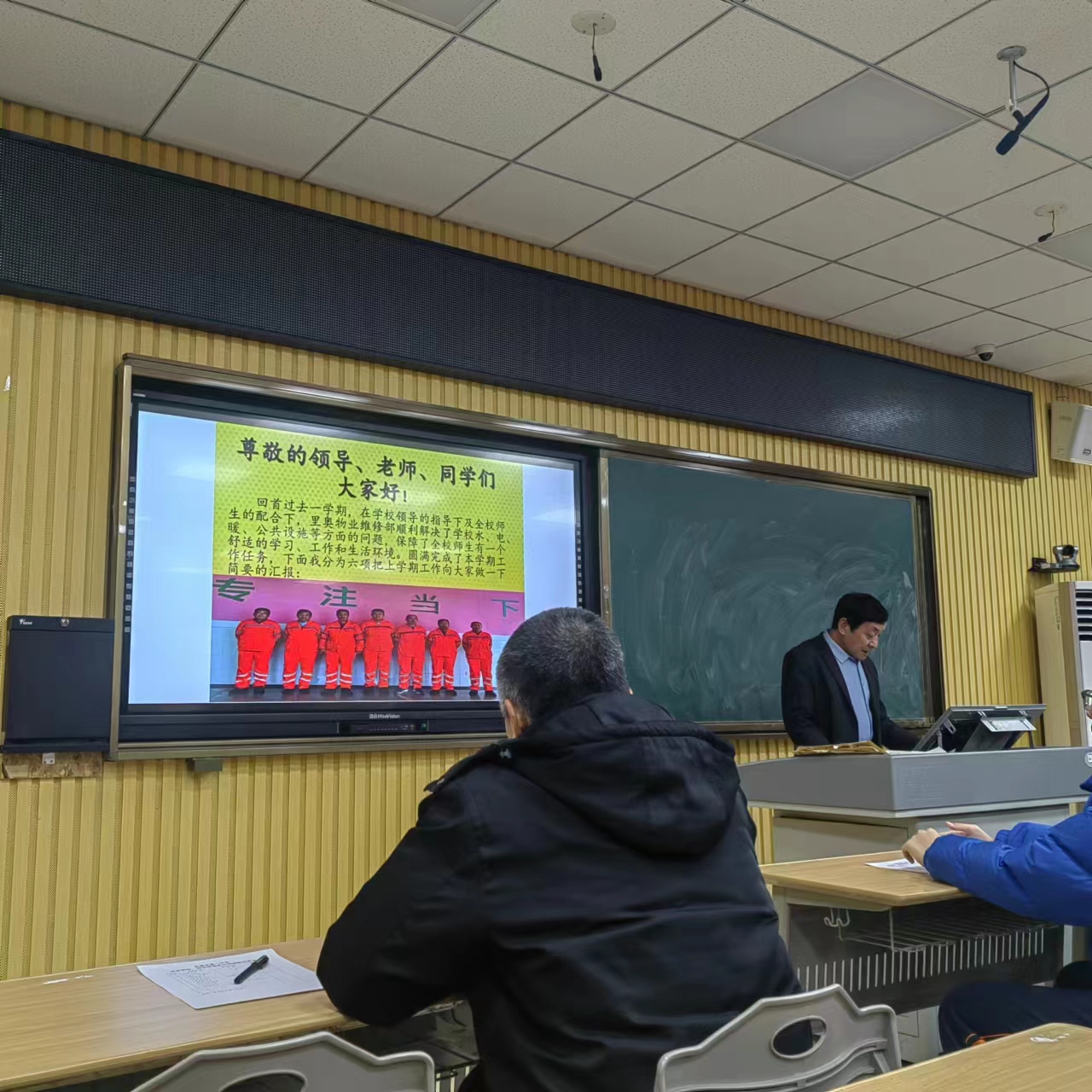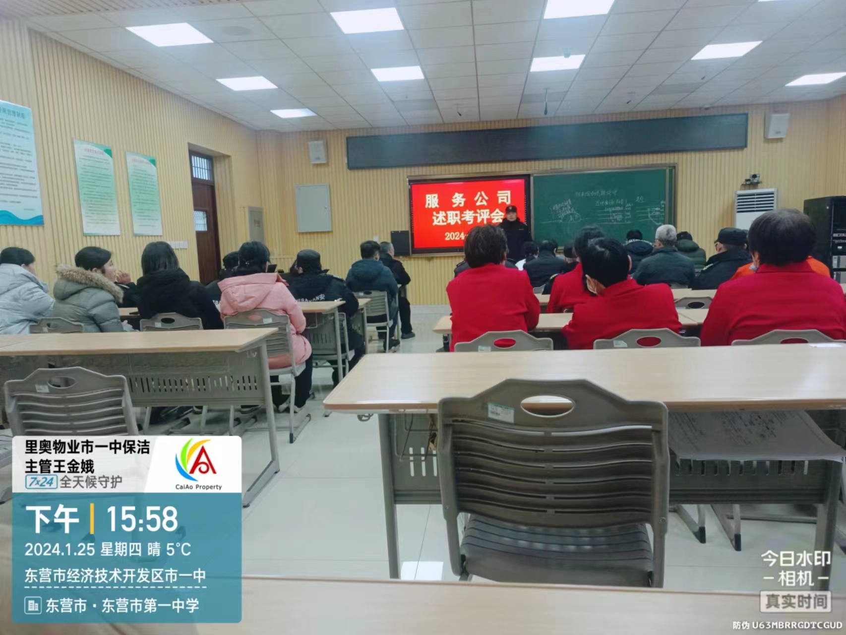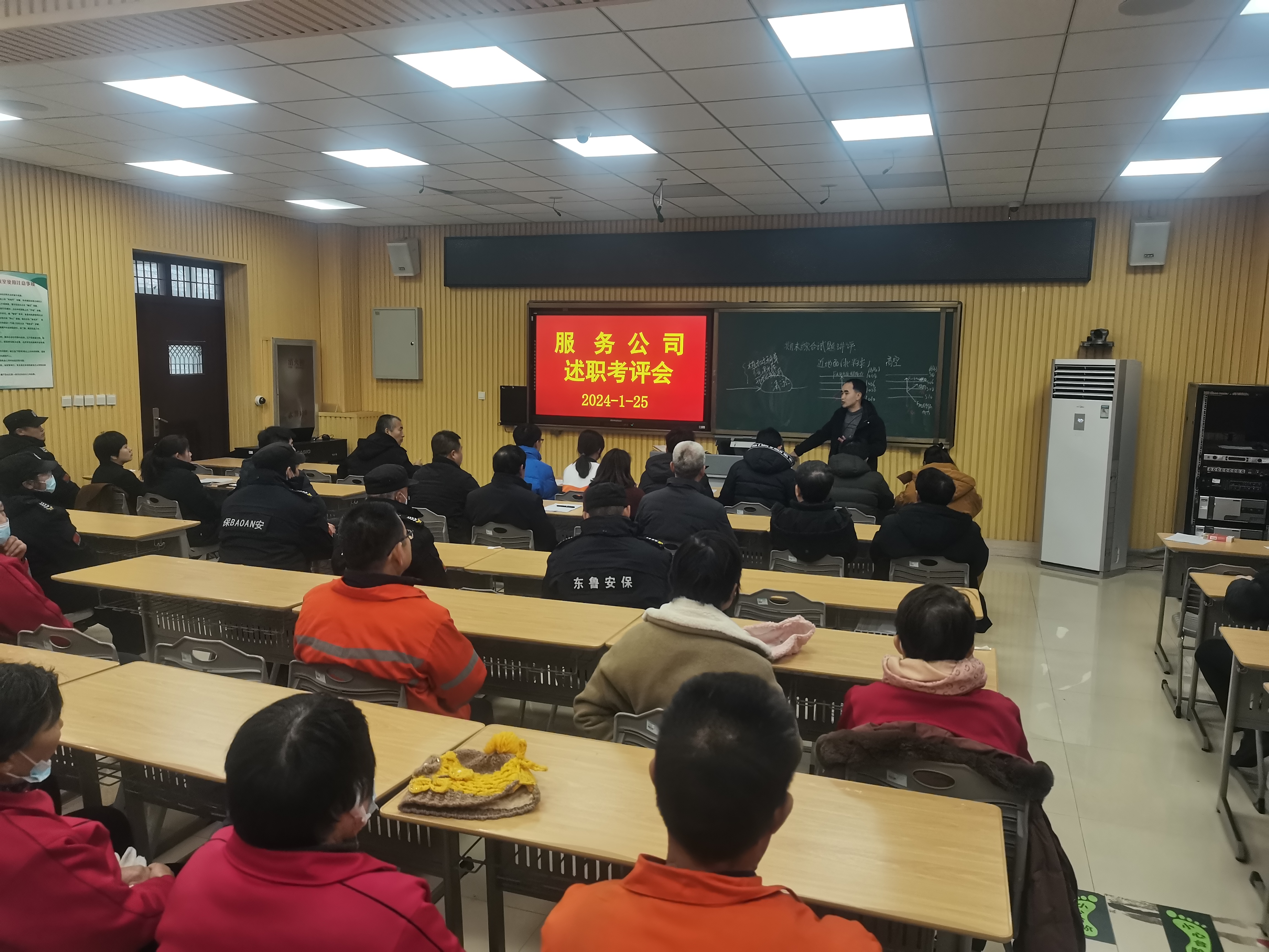 为相互学习,总结经验,查找不足,督促校内服务公司进一步提高服务水平,我校于1月25日下午组织召开了2023-2024学年第一学期服务公司述职评议会议。安保、保洁、物业维修、超市、书吧、直饮水、热水等十家服务公司负责人及部分员工代表参加会议,学校副校长赖声平出席会议,会议由总务处董玉武主任主持。