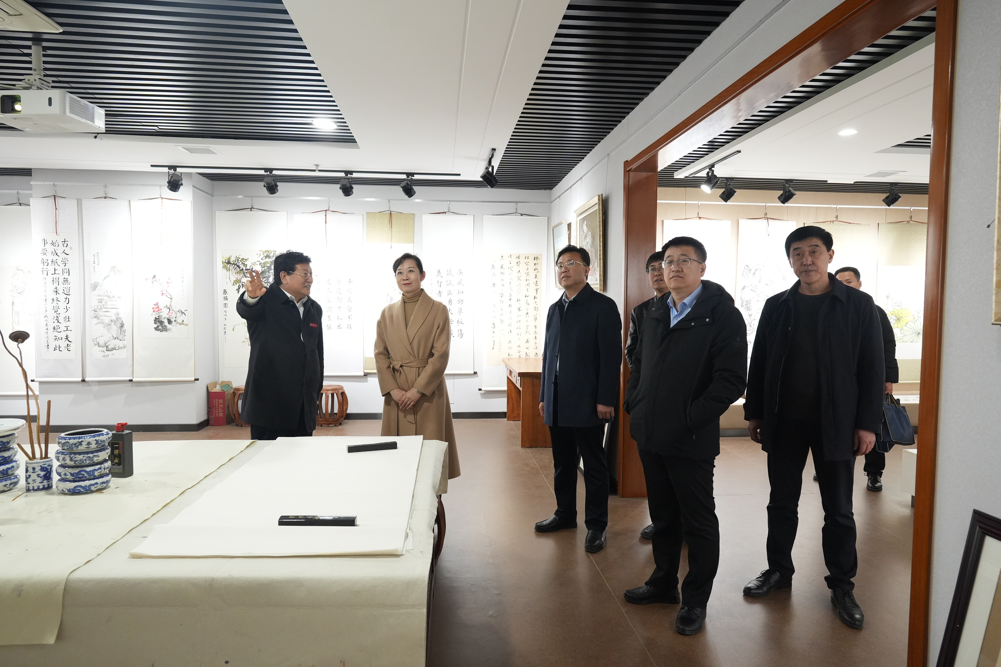 鞠红燕书记一行先后参观了校史馆、艺术馆、党建学馆、楹联学馆和军事学馆等,在礼堂观看了校歌MV。