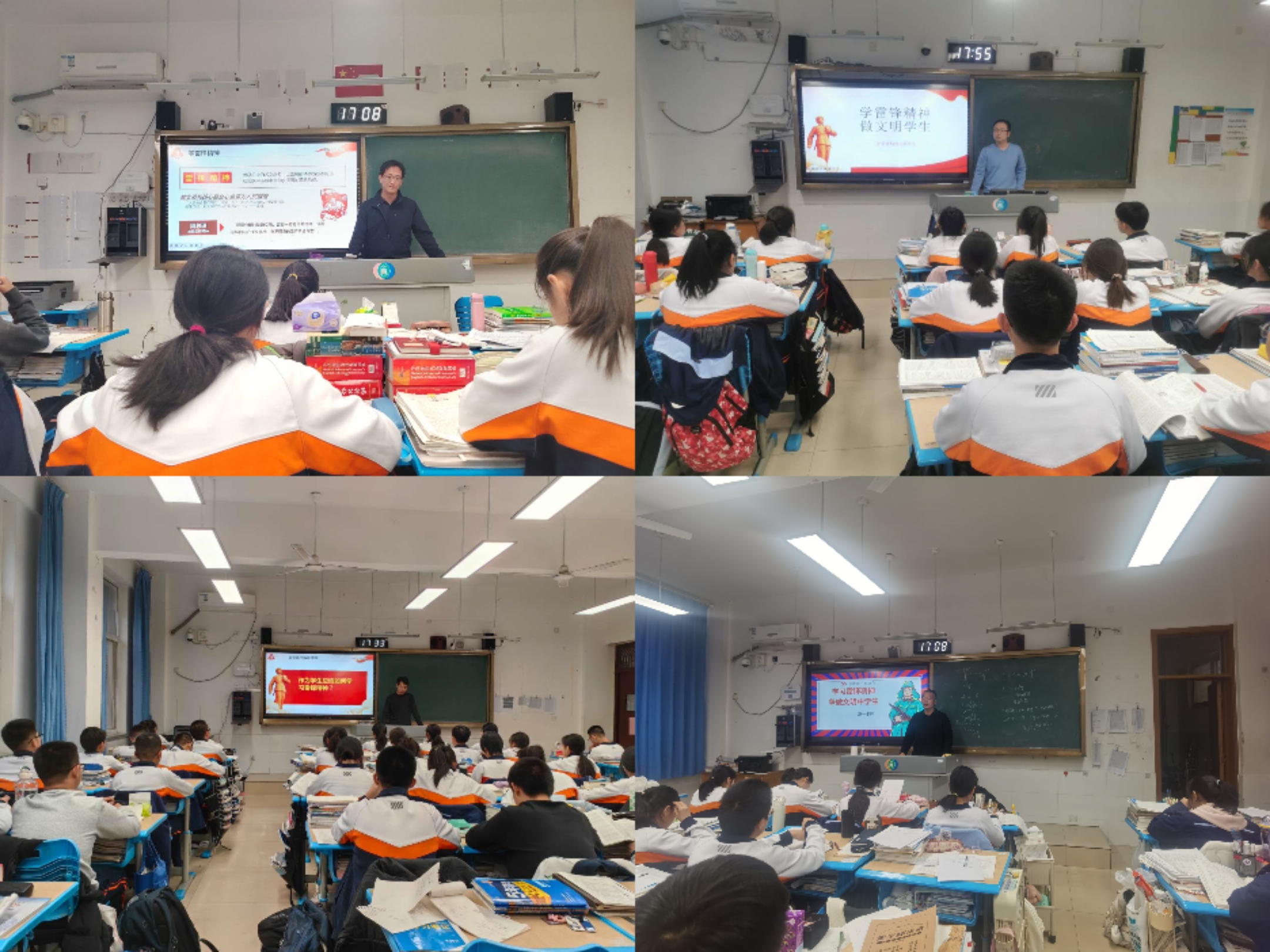 雷锋同志无私奉献、乐于助人、艰苦奋斗的精神,是我们学习的榜样。2023级部一直注重培养学生的文明素养,为了让学生更好地理解和践行雷锋精神,级部安排细致,全体班主任听取了孙金琪、李建庚两位老师的主题汇报;各班通过主题班会的形式,让学生了解雷锋同志的生平和事迹,引导学生思考雷锋精神在当代社会的意义,通过“寻找身边的雷锋、发现身边不文明的行为、批评与自我批评”等环节,让学生们在主题教育活动中发现、反省,努力做心中有集体,友爱同学;好学上进,勤奋爱学;敏思笃行,谦逊和睦;遵规守纪,文明礼貌,传承弘扬的文明中学生。