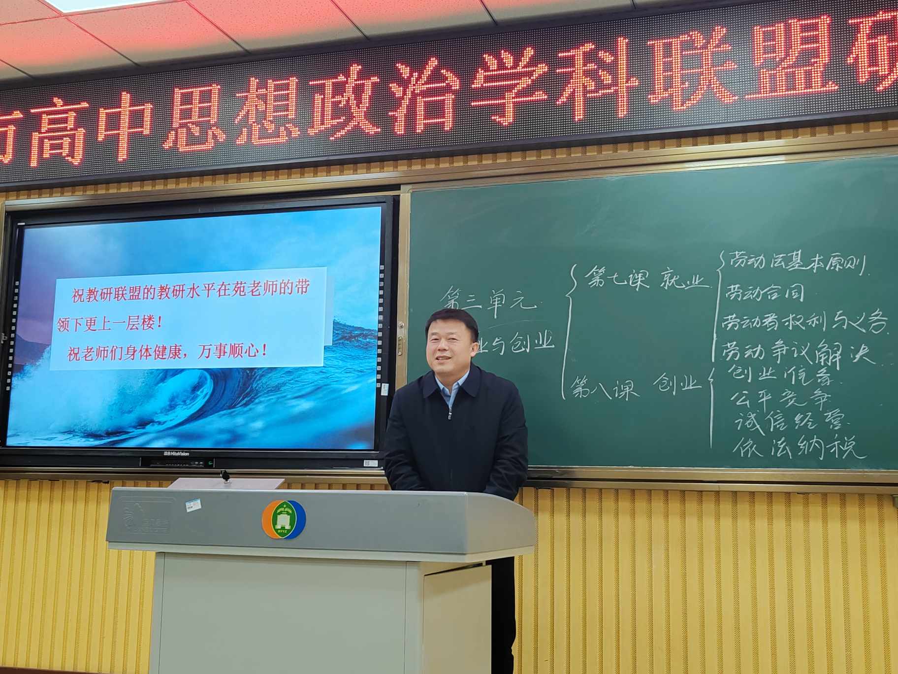 3月19日,东营市高中政治学科联盟高效思想政治学科课堂教学探讨活动在我校举行。东营市教研员,联盟成员单位各校领衔教师、教研组长、教学组长、备课组长及部分骨干教师参加了本次活动。活动由2022级政治组组长瞿会芹老师主持,围绕高中政治新授课的高效教学实施展开探讨。