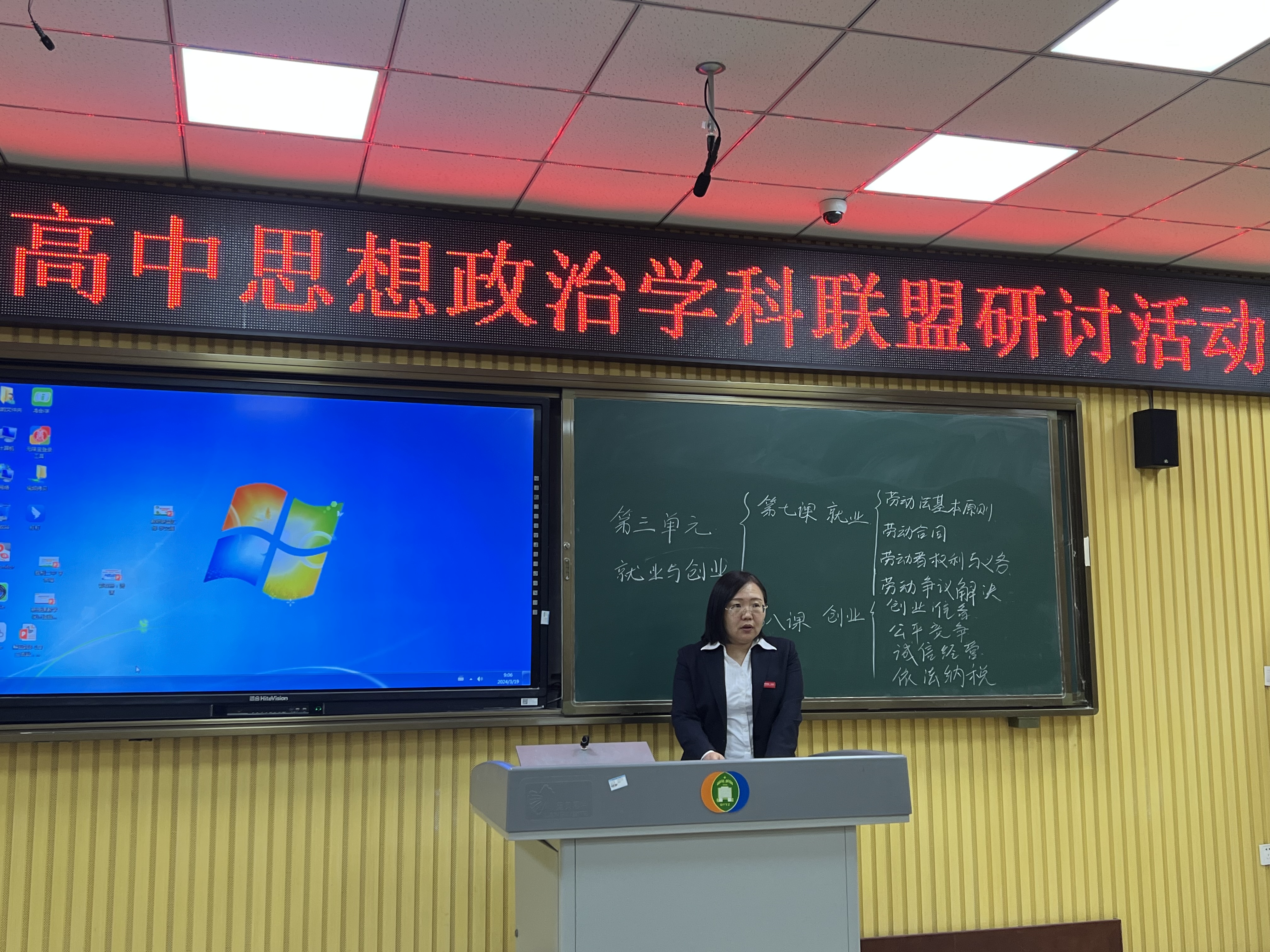 我校政治组解亚妮老师进行了以《自主创业 公平竞争》为课题的高质量新授课教学设计展示,展现了我校在新授课教学中务实、高效、可操作的做法,受到了与会老师的高度评价。