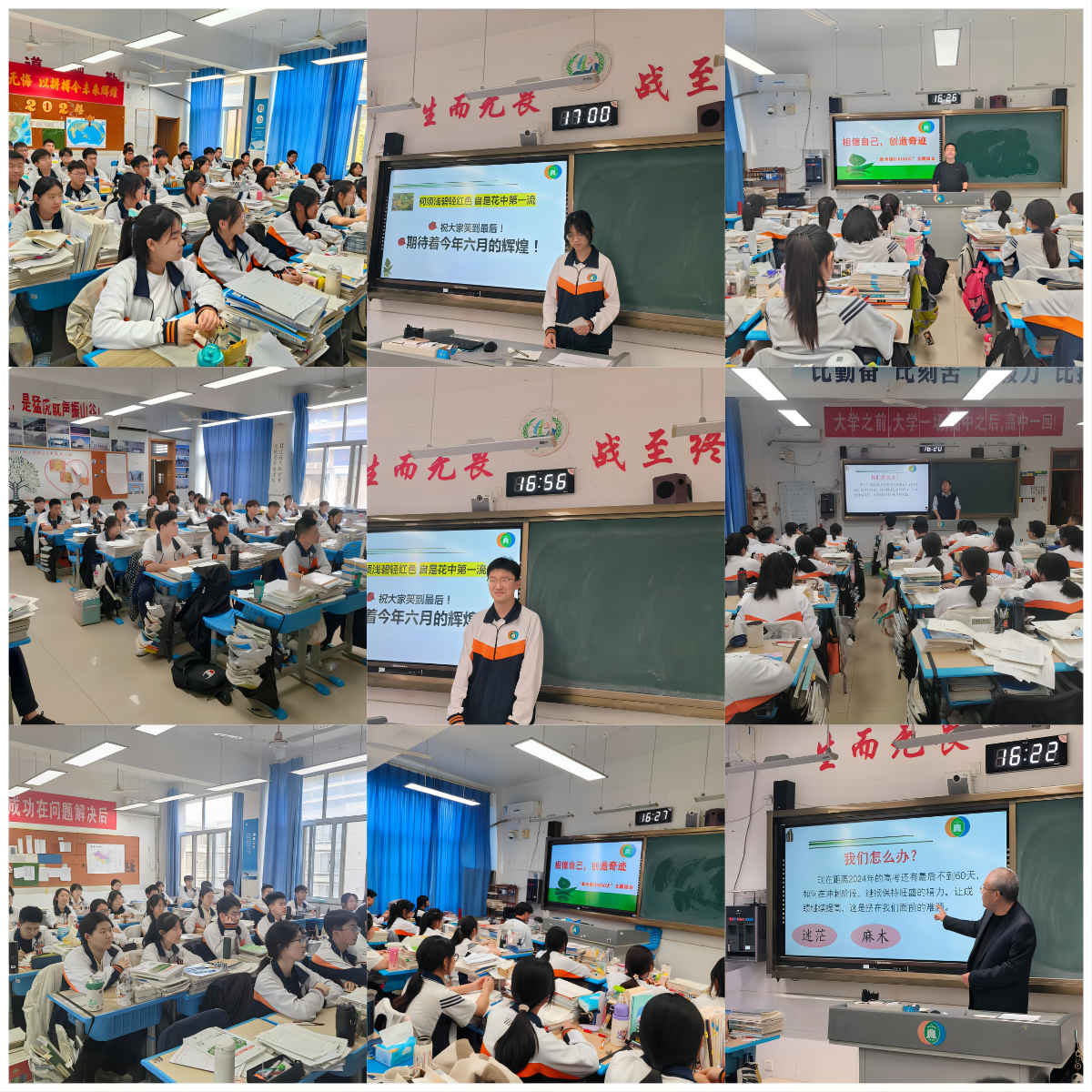 随后各班级分头召开了精彩纷呈的班会。本次主题班会,厉彦明老师、张肖肖老师提前设计了班会方案,其余班主任在此方案的基础上结合自己班级的实际进行了修改补充。有的班级组织了“梦想加油站”活动,指出梦想是邮票,你把它贴在哪,它就能把你带到哪;有的班级以与同学们朝夕相伴的教师对同学们的期许,触动同学们成绩退步的思考;有的班级发挥榜样的激励和引领作用组织了优秀学生经验介绍会;有的班级组织了“锤炼考试心态”的活动,大家在交流中缓解了备考途中的焦虑。