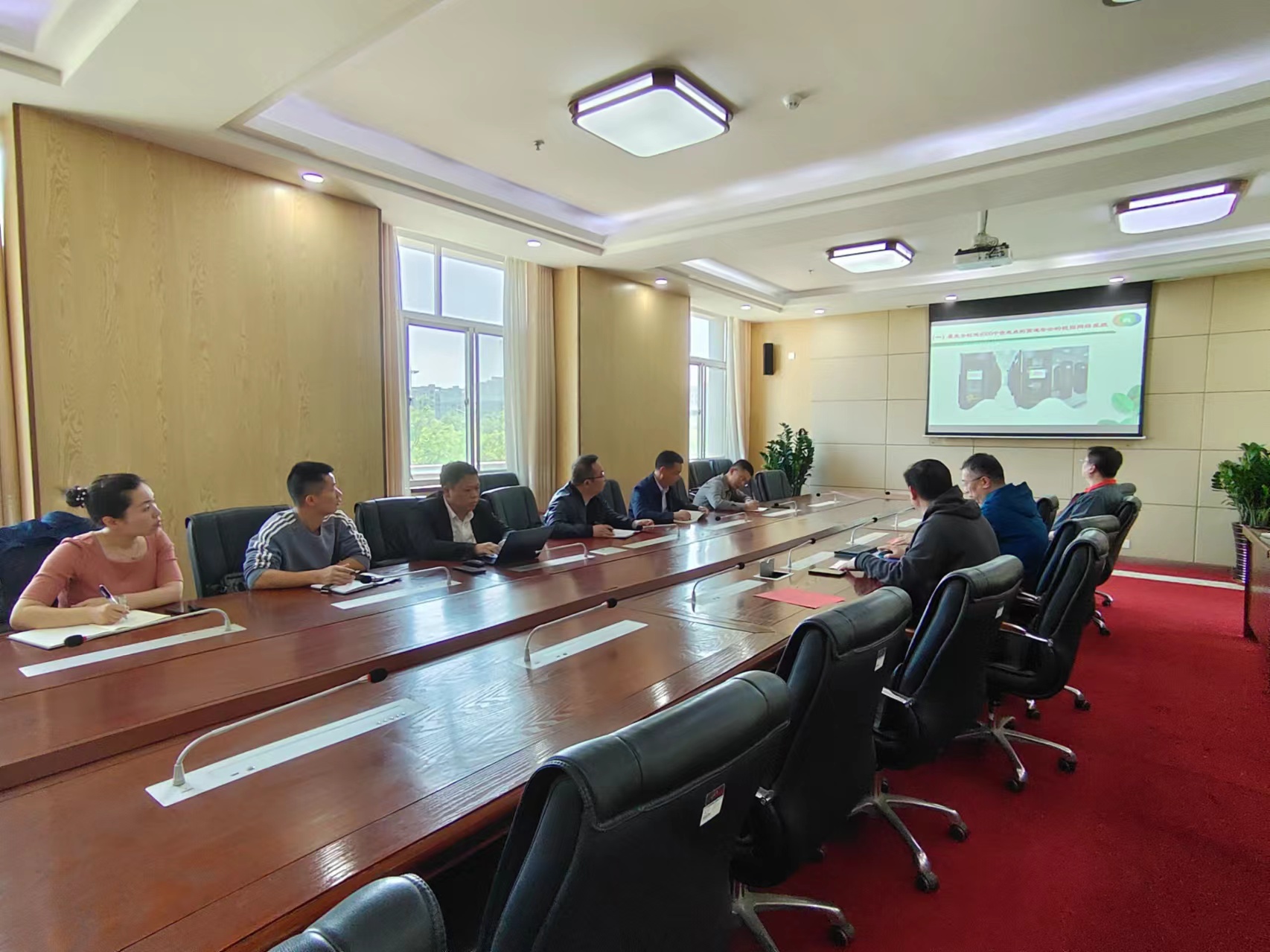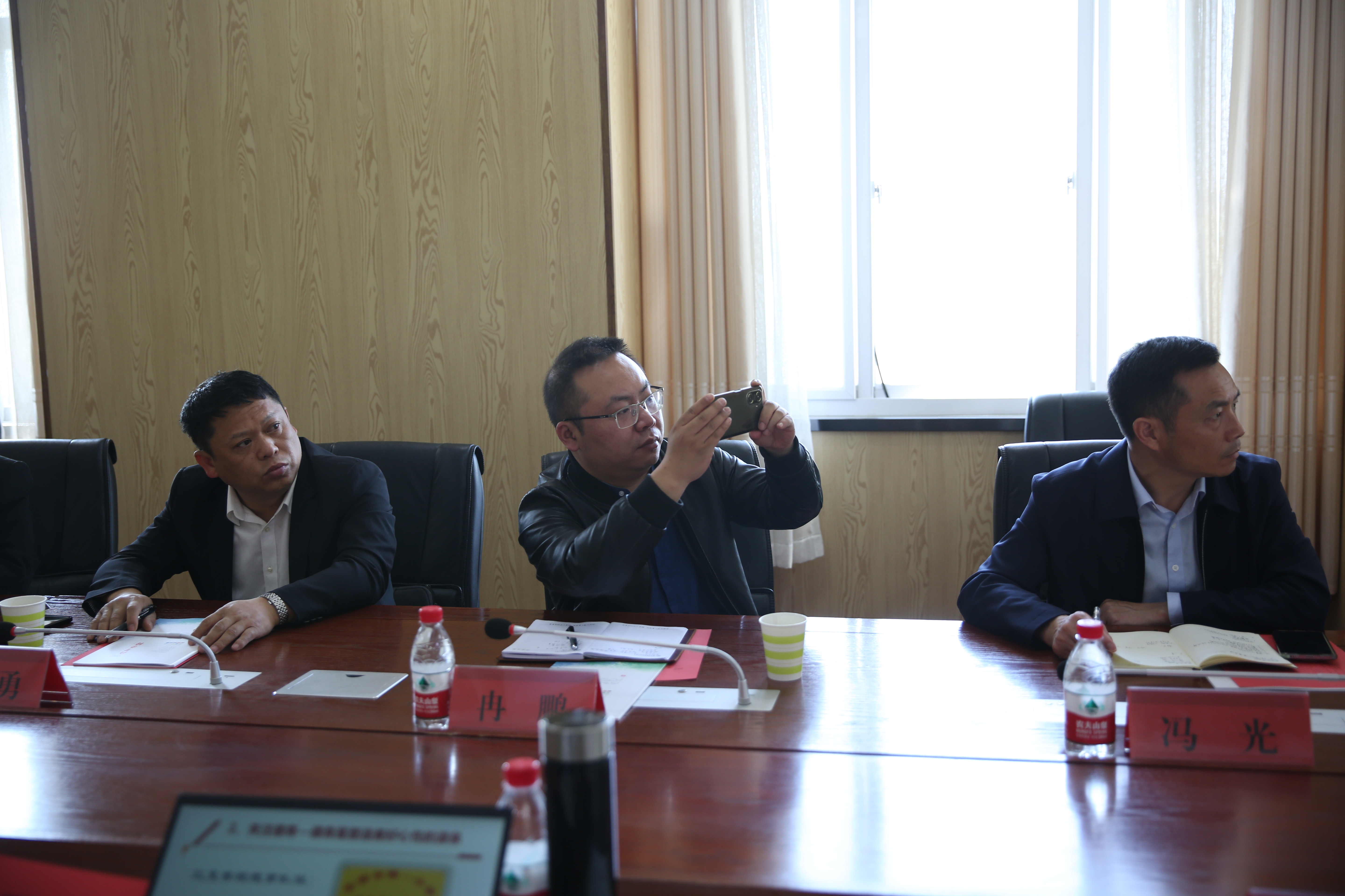 在学校电教处,来访嘉宾与我校老师座谈,电教处主任杨栋详细介绍电教处工作。