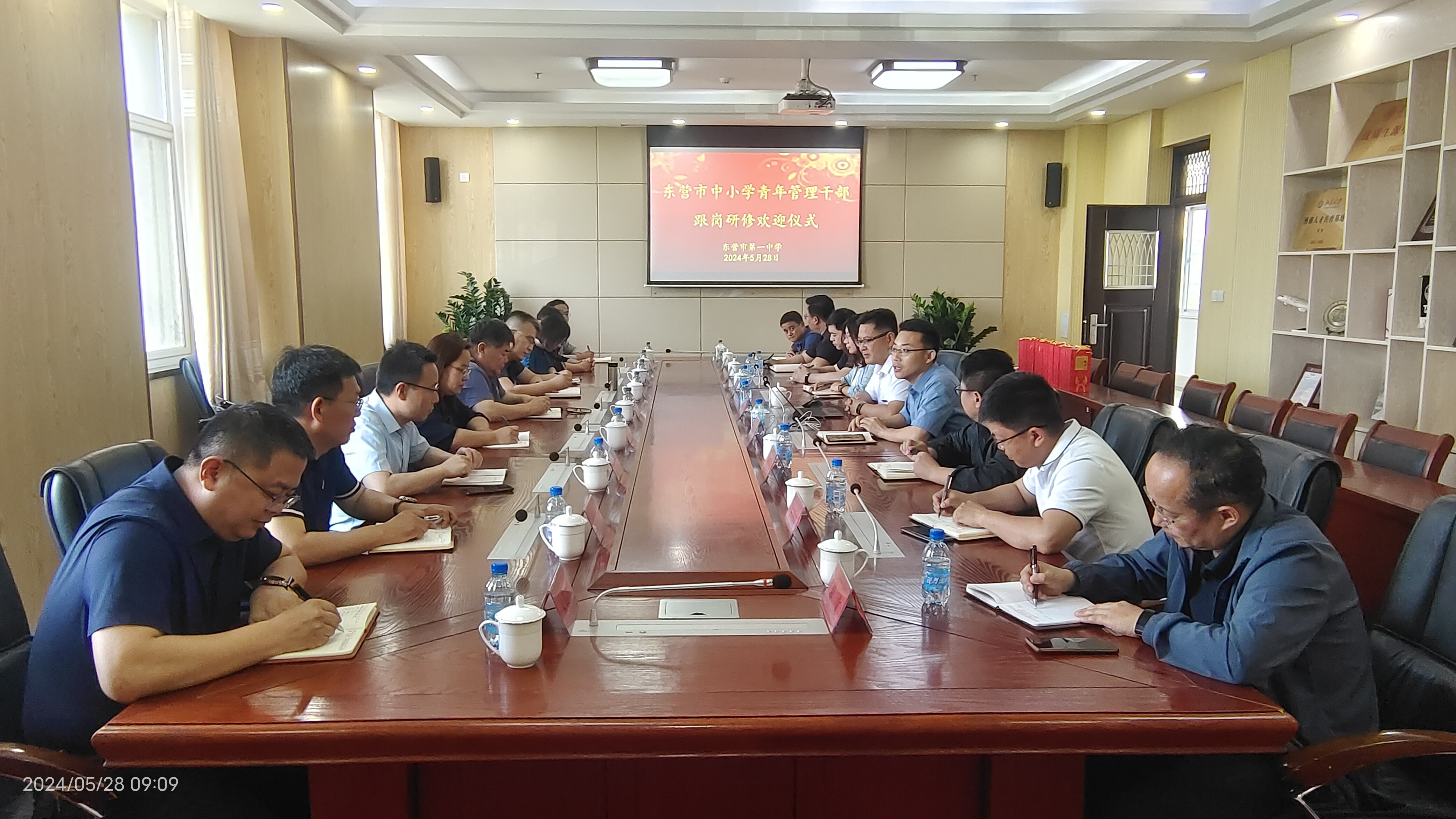 5月28日上午,东营市中小学青年管理干部市内跟岗(高中学段)走进市一中。欢迎仪式由学校副校长赖声平主持,教育局田照清科长、尹燕花副科长出席了会议。