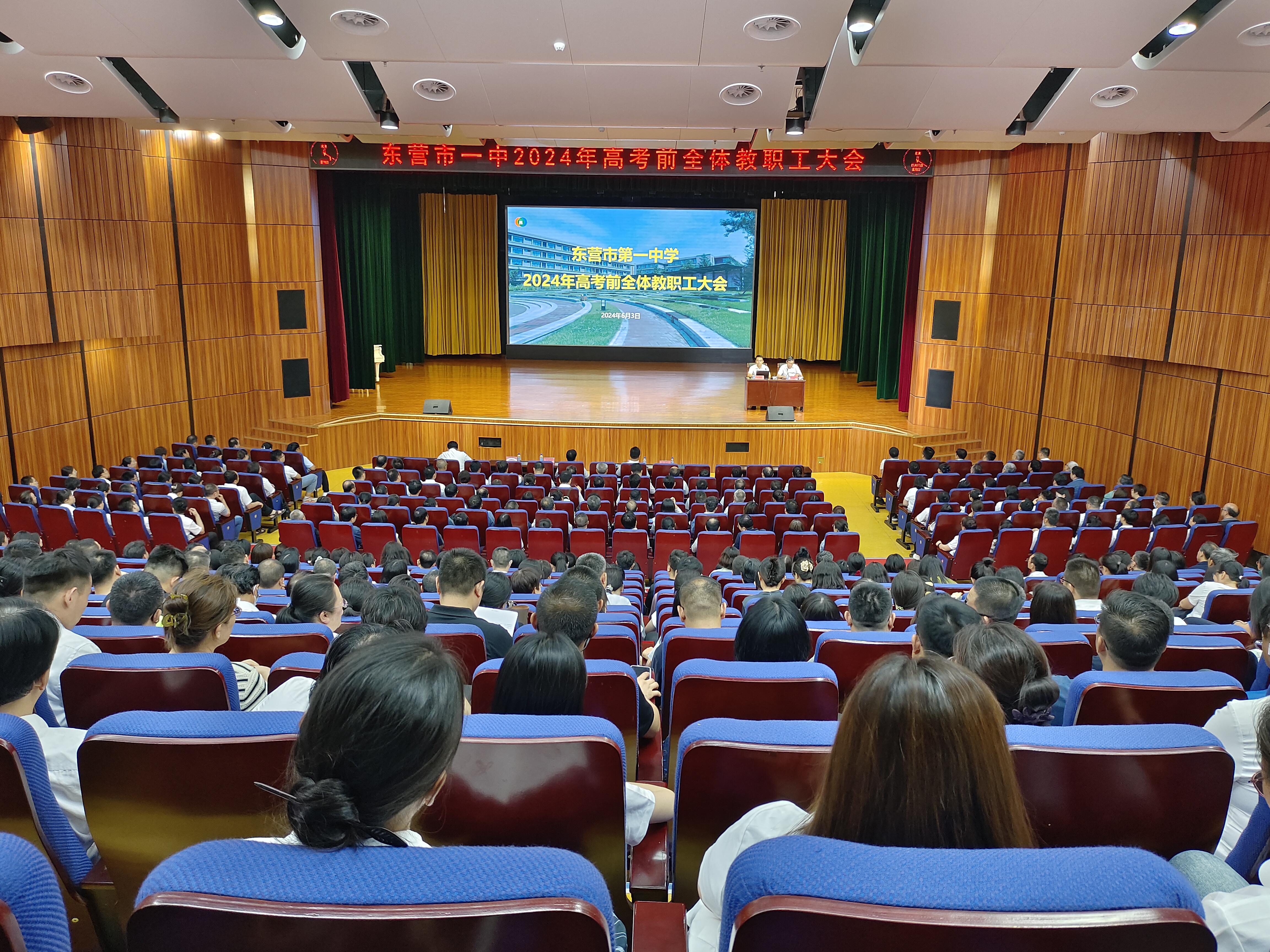 6月3日晚,东营市第一中学高考前全体教职工大会在学校道德讲堂举行。党委书记、校长史本泉出席会议并讲话。