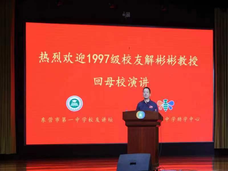 2024年6月20日下午4:00,东营市一中道德大讲堂秩序井然,掌声不断,以“求学与创新”为主题的东营市一中第六期校友讲坛正式开始。主讲人解彬彬,东营市一中1997级校友,山东大学微生物技术国家重点实验室(研究院)教授,博士生导师,赴美访问学者。